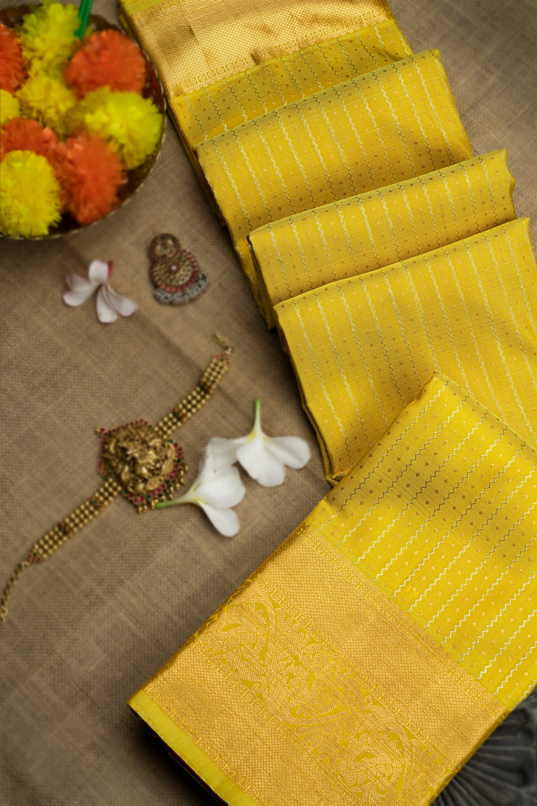 Mandir Yellow & Yellow Kanchipuram Lines Saree