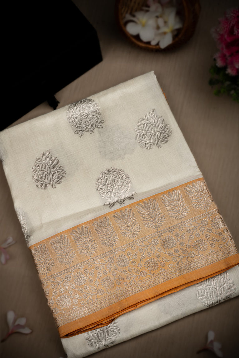 Mandir Off White & Mustard Venkatagiri Motifs Saree