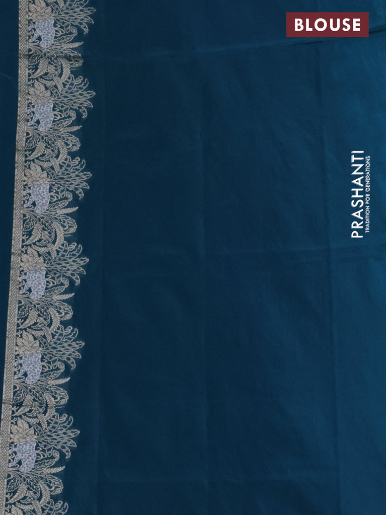 Banarasi semi katan silk saree peacock blue with allover silver & gold zari weaves and floral zari woven border