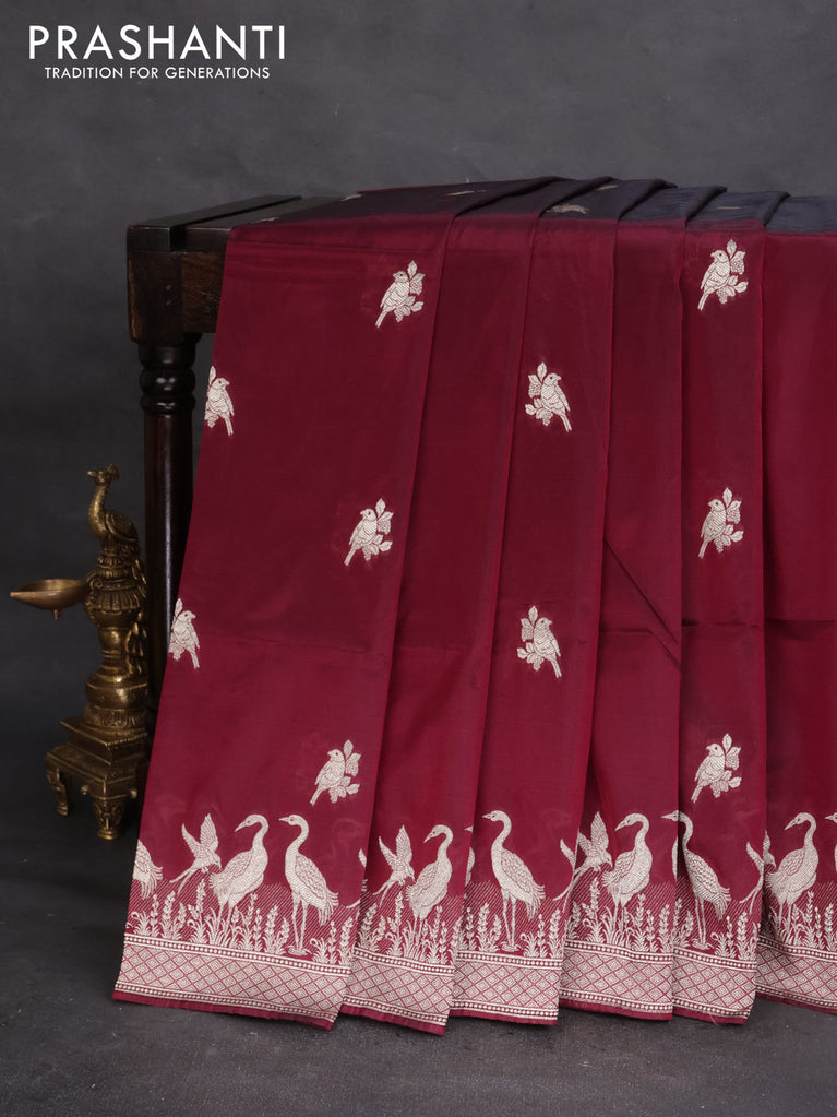 Banarasi semi katan silk saree maroon with zari woven buttas and rich zari woven border