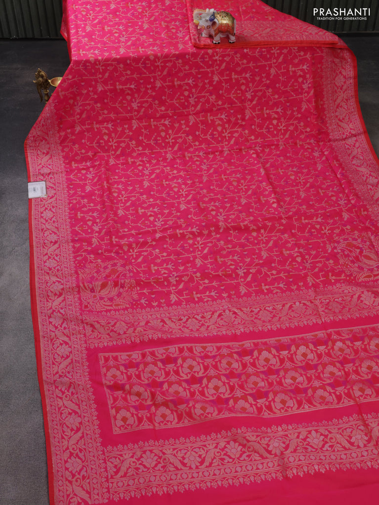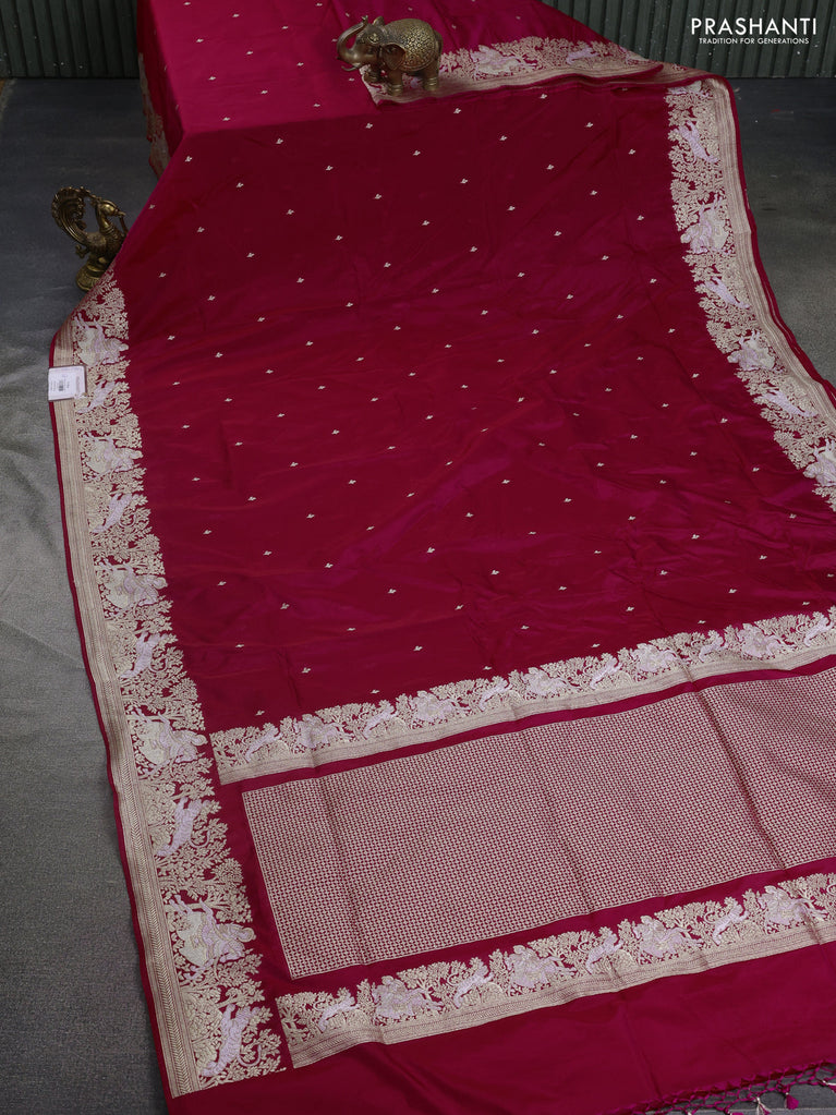 Banarasi semi katan silk saree magenta pink with allover jamdhani weaves and rich zari woven border