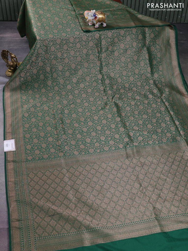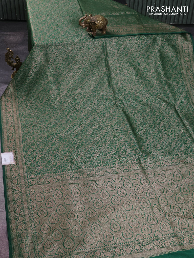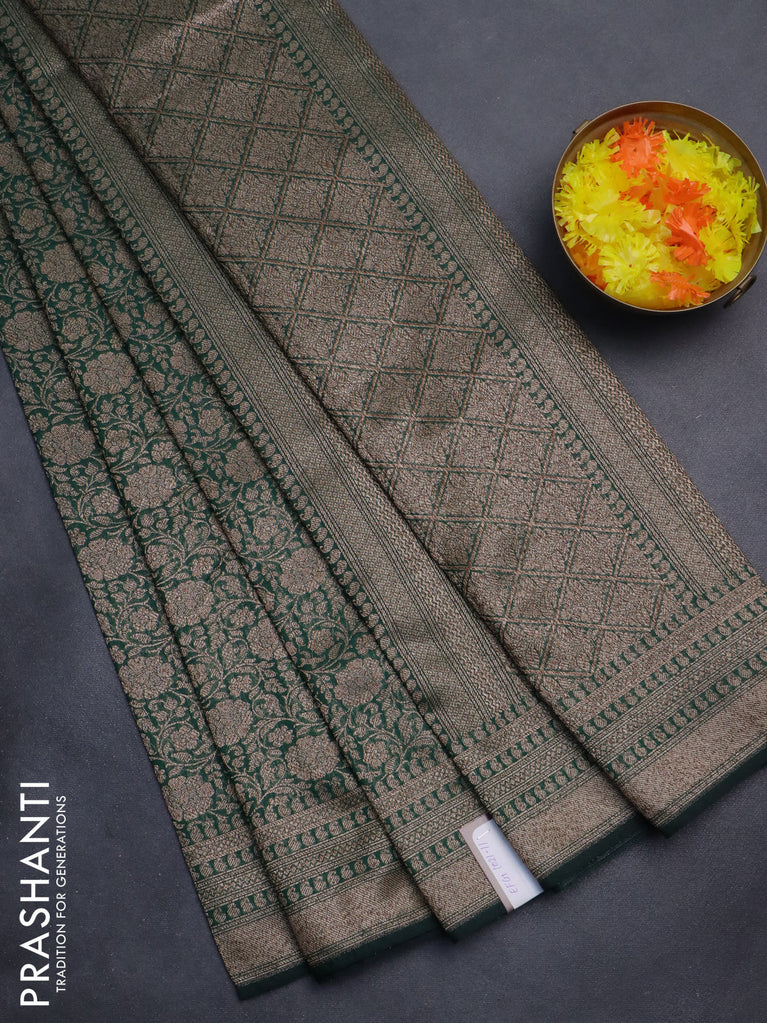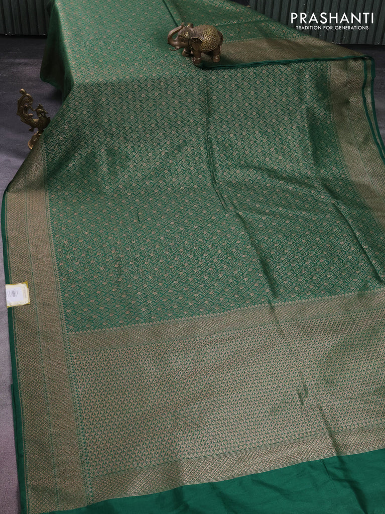 Banarasi semi silk saree green with allover thread & zari weaves and woven border