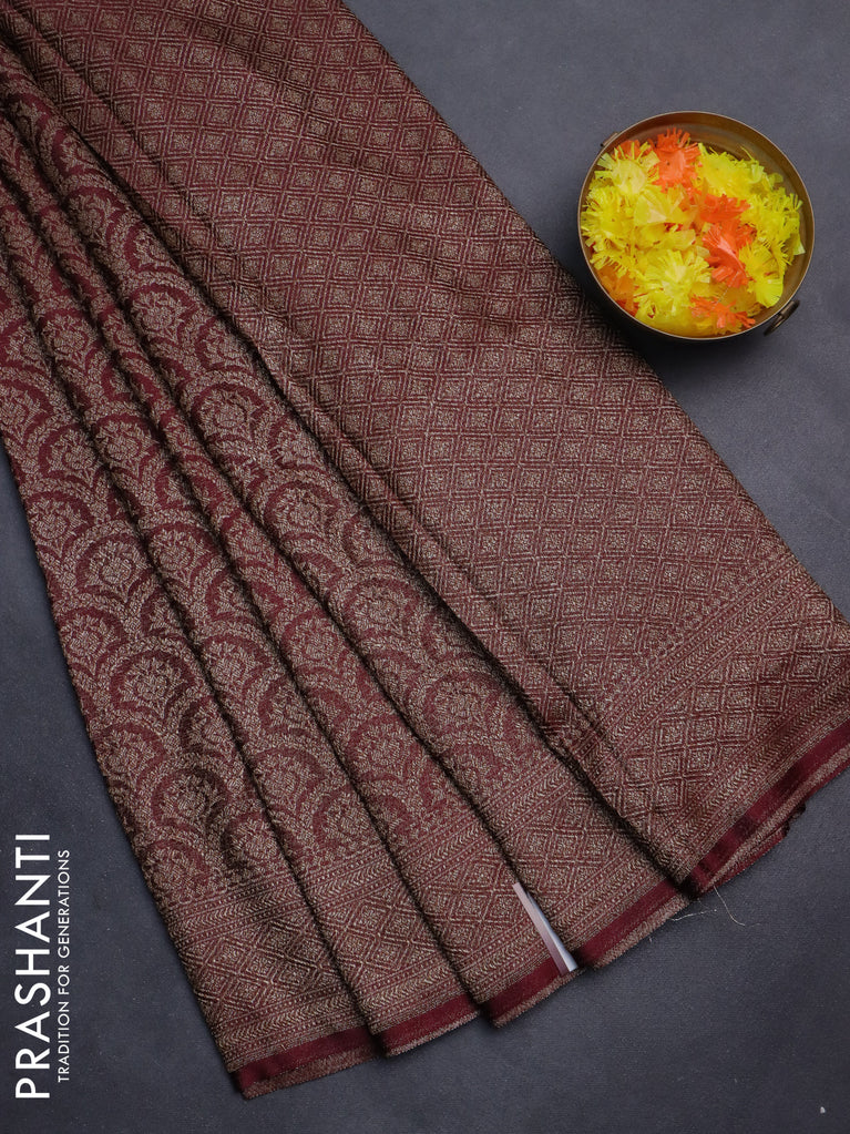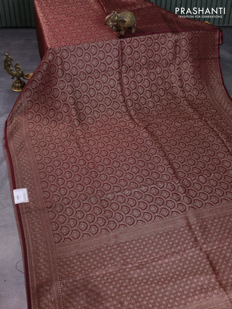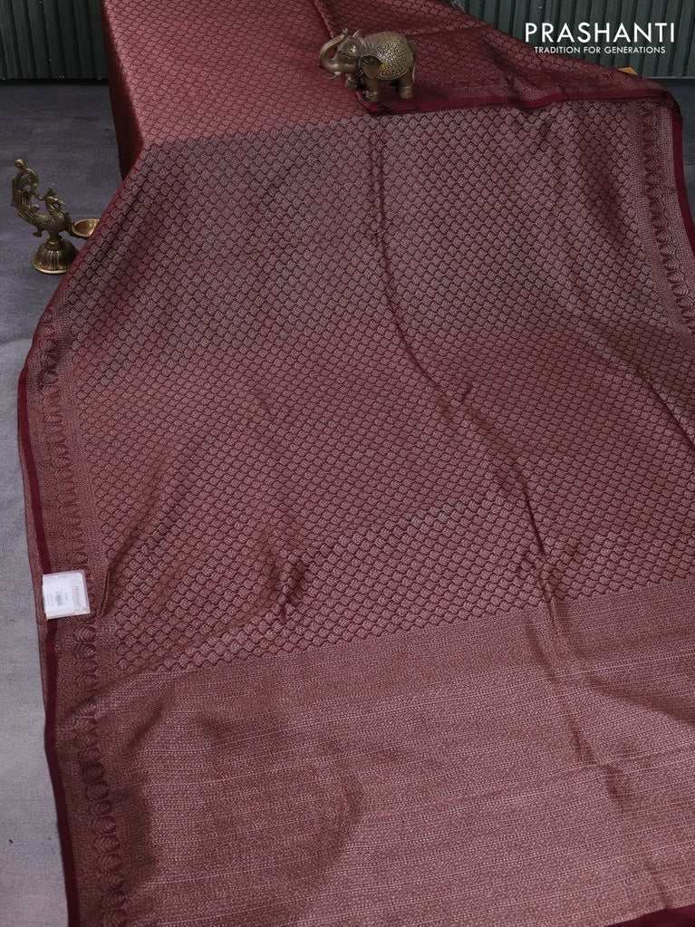 Banarasi semi silk saree deep maroon with allover thread & zari weaves and woven border