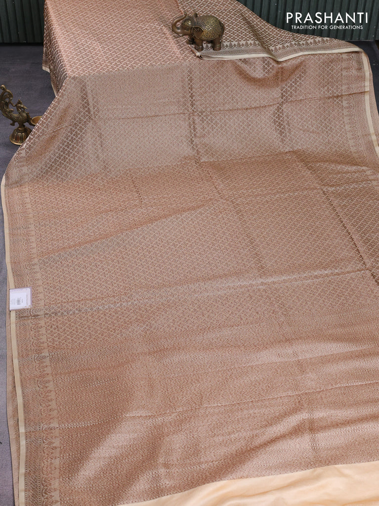 Banarasi semi silk saree sandal with allover thread & zari weaves and woven border