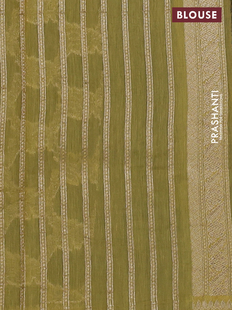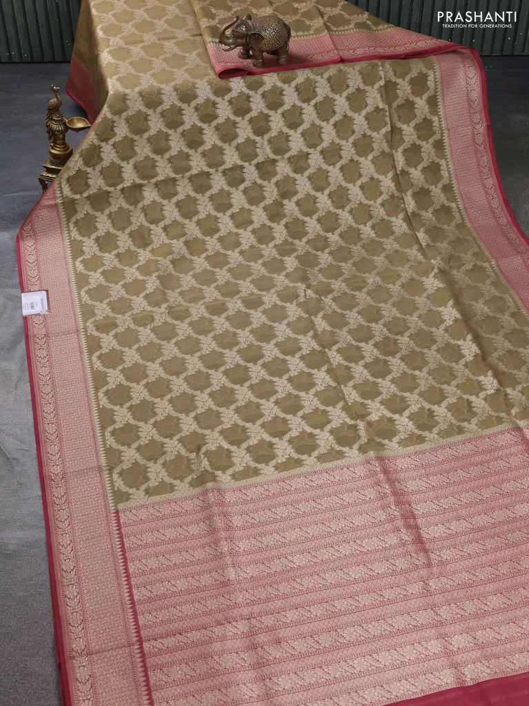 Banarasi silk cotton saree elaichi green and maroon shade with allover zari woven brocade weaves and woven border