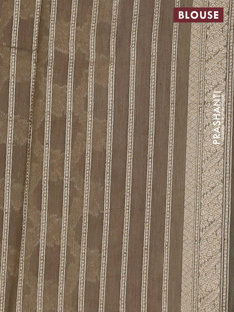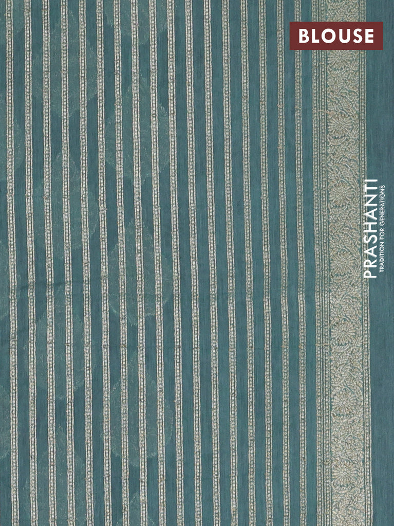 Banarasi semi tussar saree pastel grey and teal green with allover ikat weaves and copper zari woven border