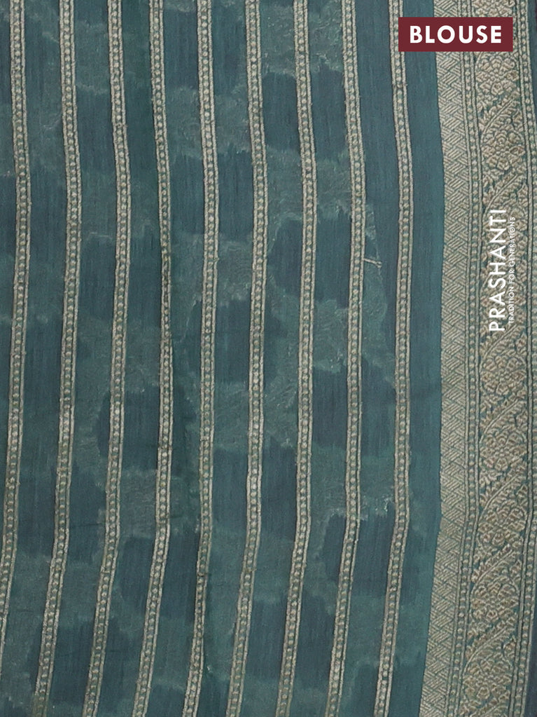 Banarasi semi tussar saree teal blue and wine shade with allover ikat weaves and copper zari woven border
