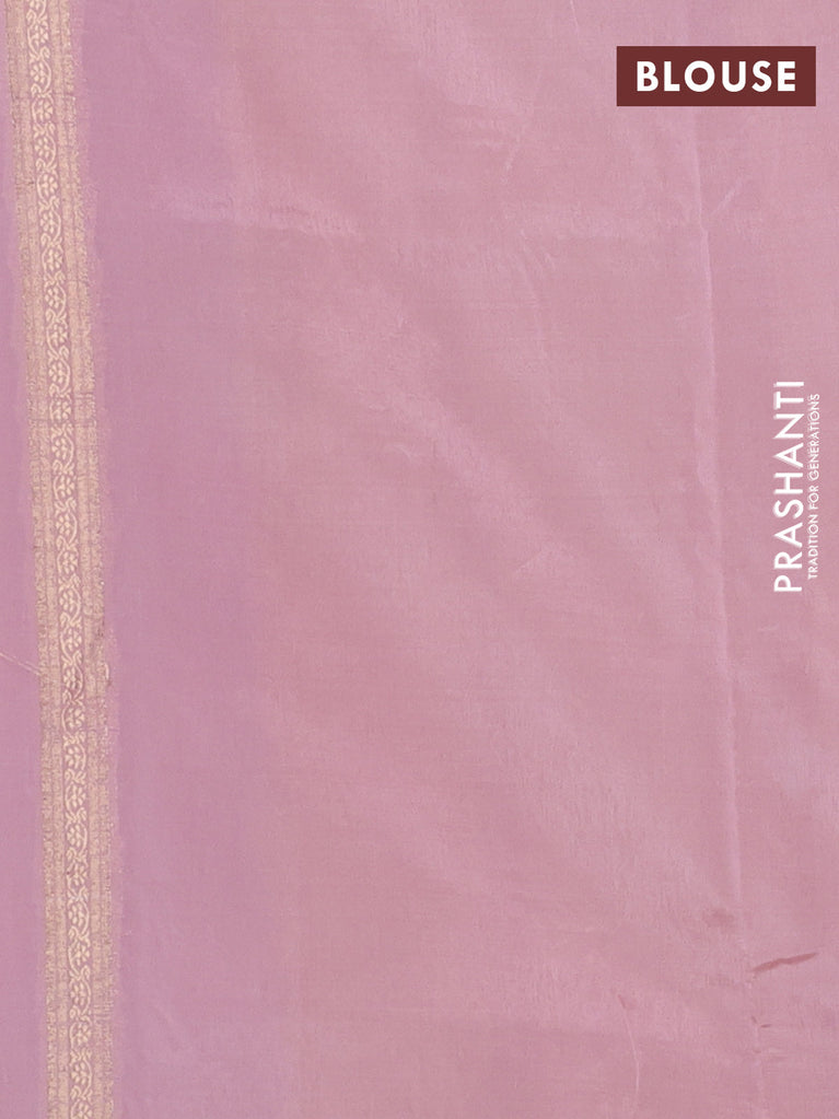 Banarasi tissue semi silk saree pastel lavender and peach pink with zari weaves & buttas and zari woven butta border