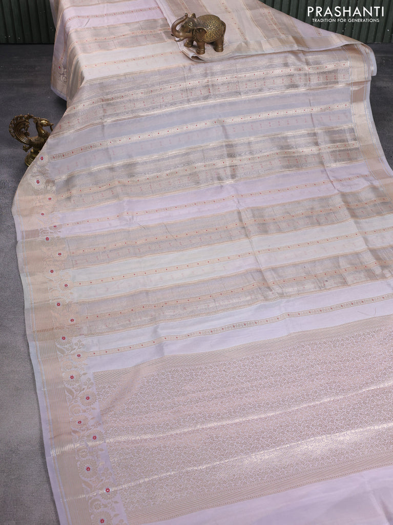 Banarasi tissue semi silk saree pastel grey and mild lavender with zari weaves & buttas and zari woven butta border