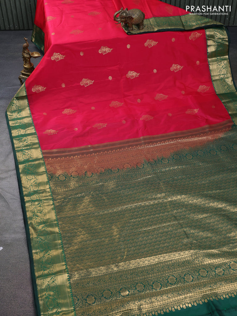 Bangalori silk saree reddish pink and green with zari woven buttas and zari woven border