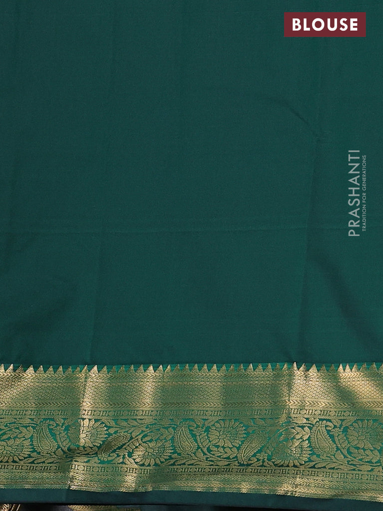 Bangalori silk saree teal blue and deep purple with zari woven buttas and zari woven border