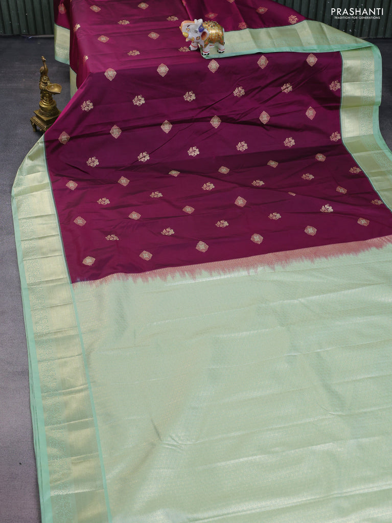 Bangalori silk saree purple and pista green with zari woven buttas and zari woven border