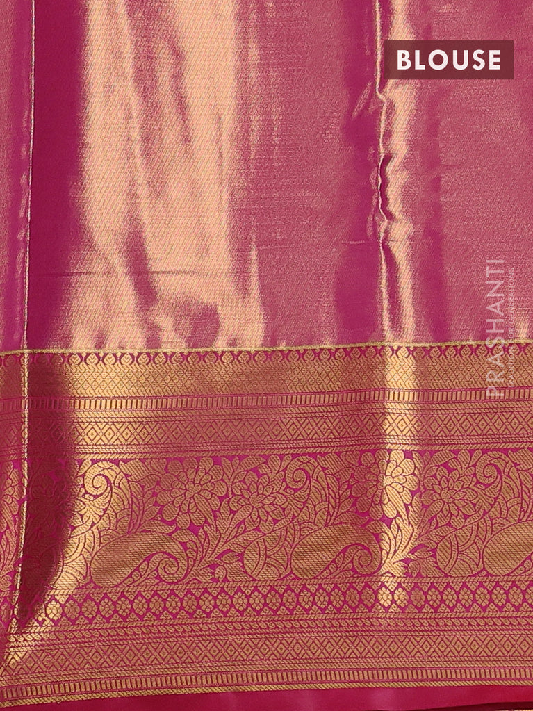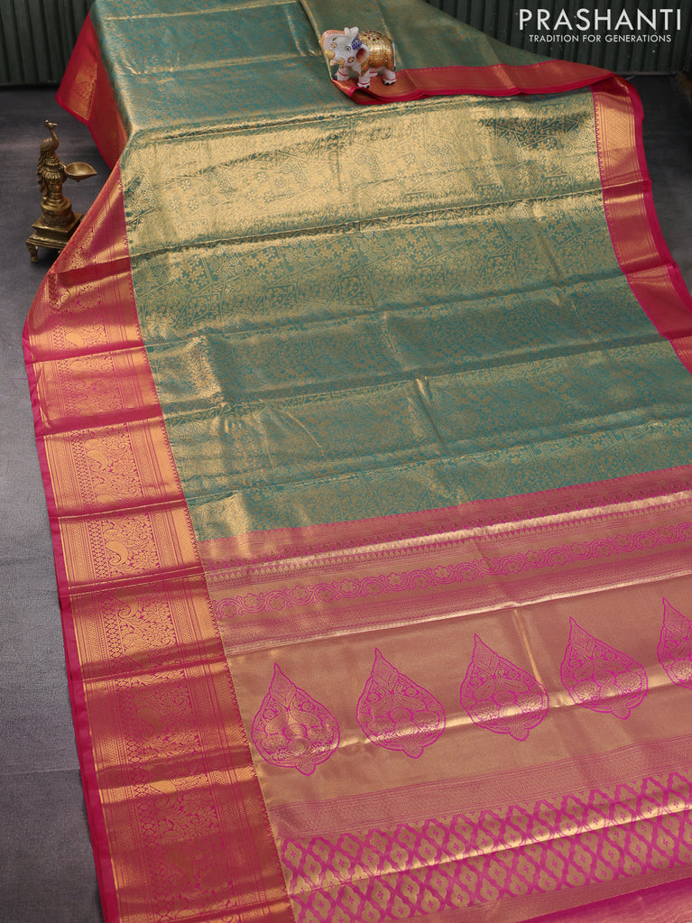 Bangalori tissue silk saree green shade and pink with allover zari woven brocade weaves and long zari woven border