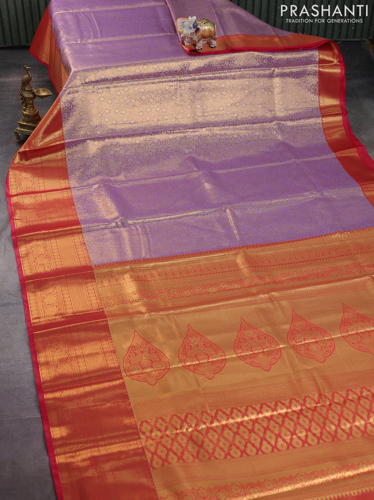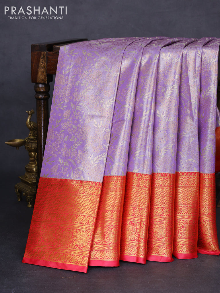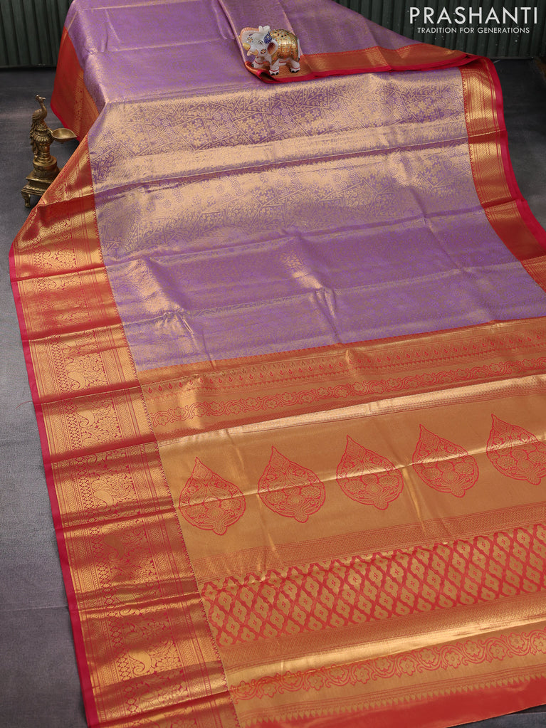 Bangalori tissue silk saree lavender and reddish pink with allover zari woven brocade weaves and long zari woven border