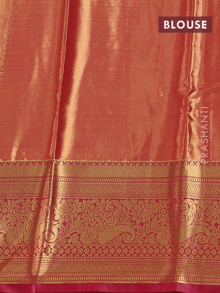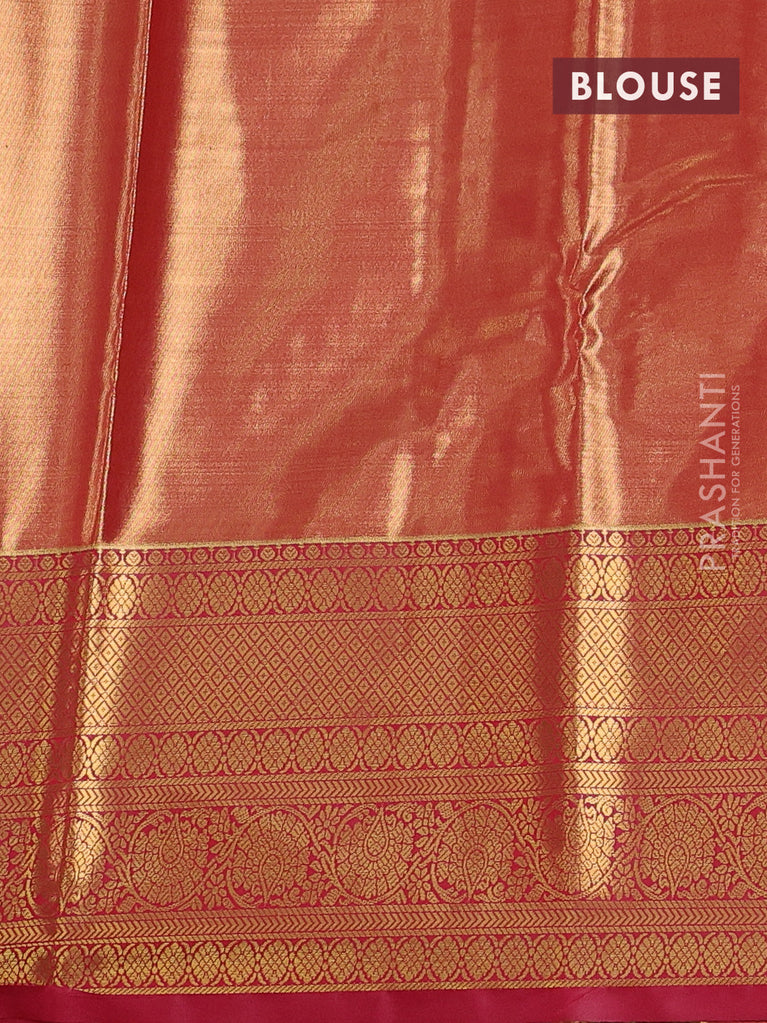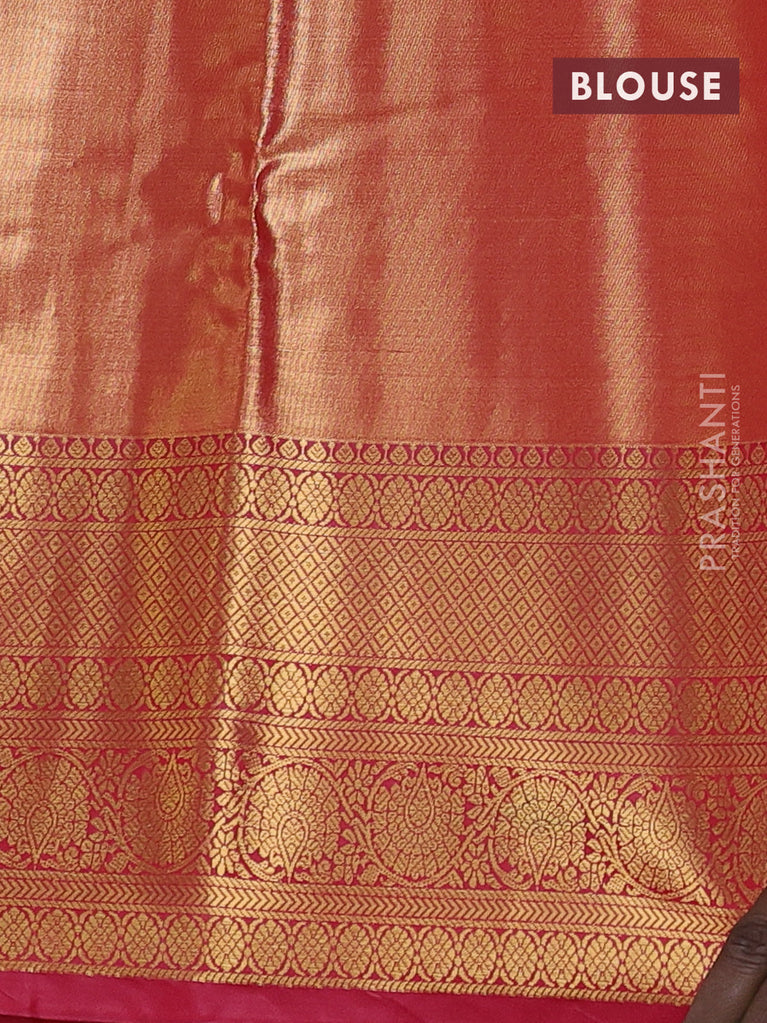 Bangalori tissue silk saree peach pink and red with allover zari woven brocade weaves and long zari woven border