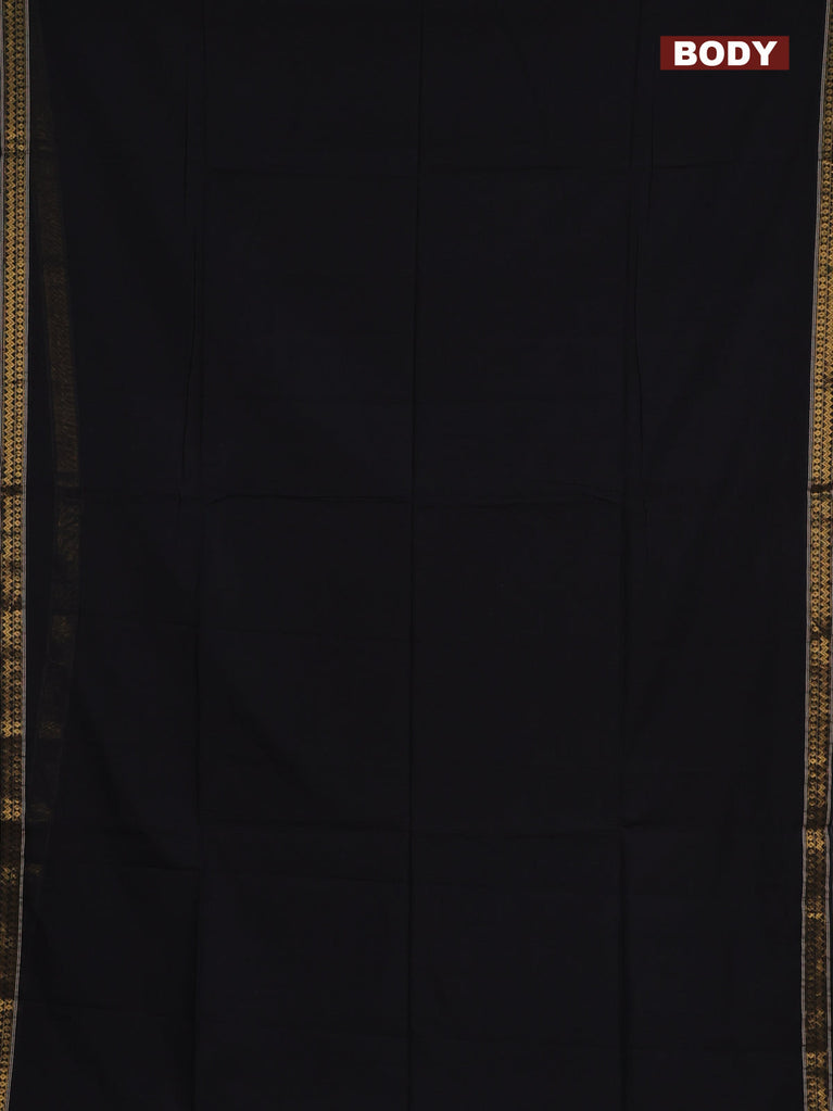 Bengal soft cotton saree black and green with plain body and zari woven border