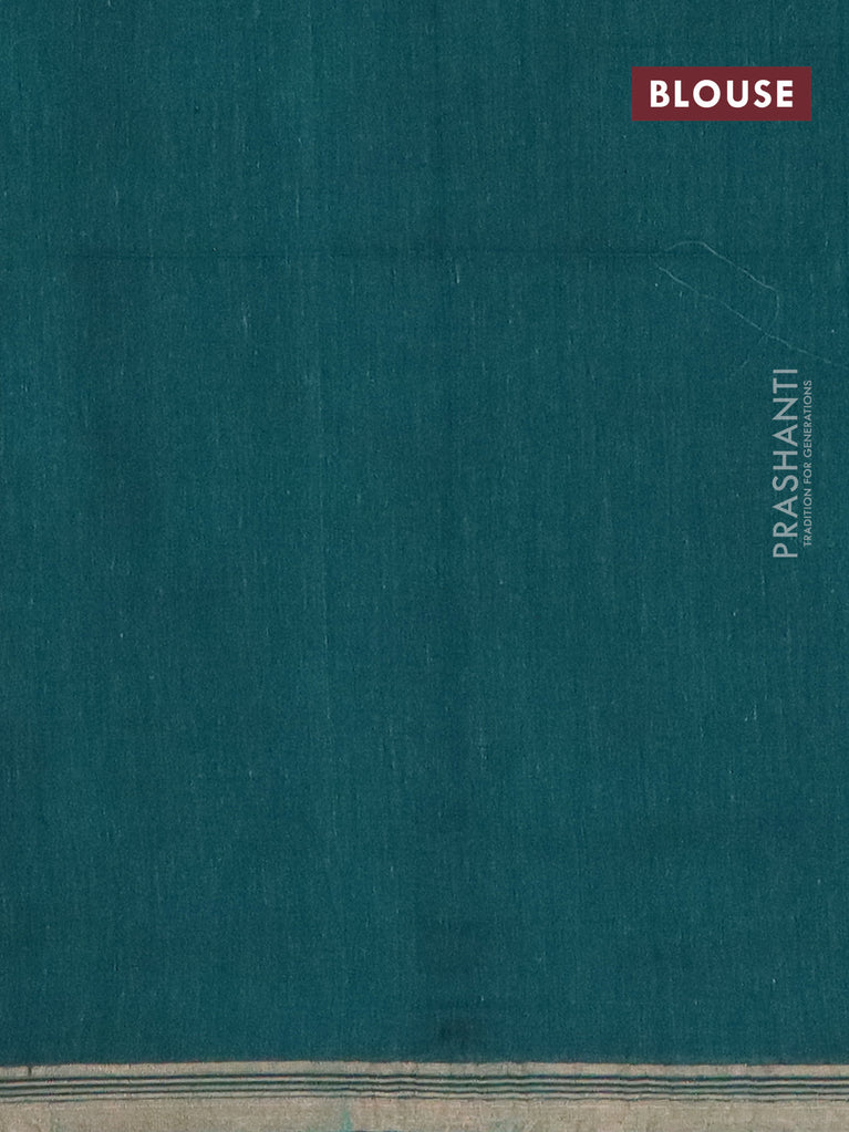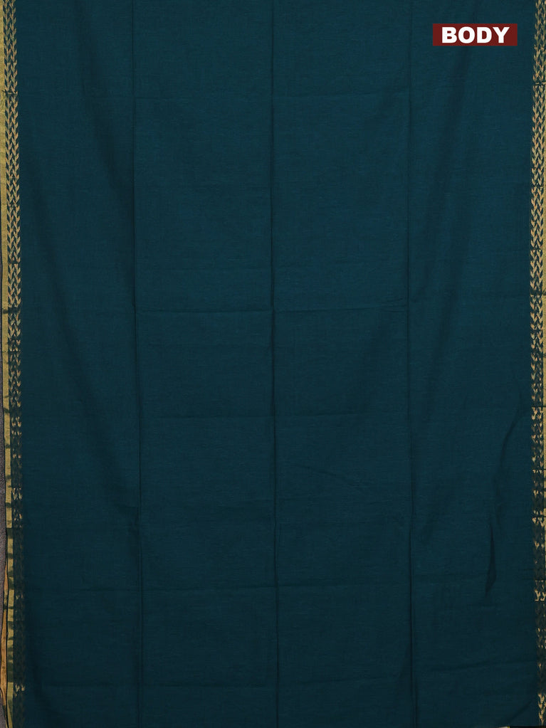 Bengal soft cotton saree peacock green and blue with plain body and zari woven border