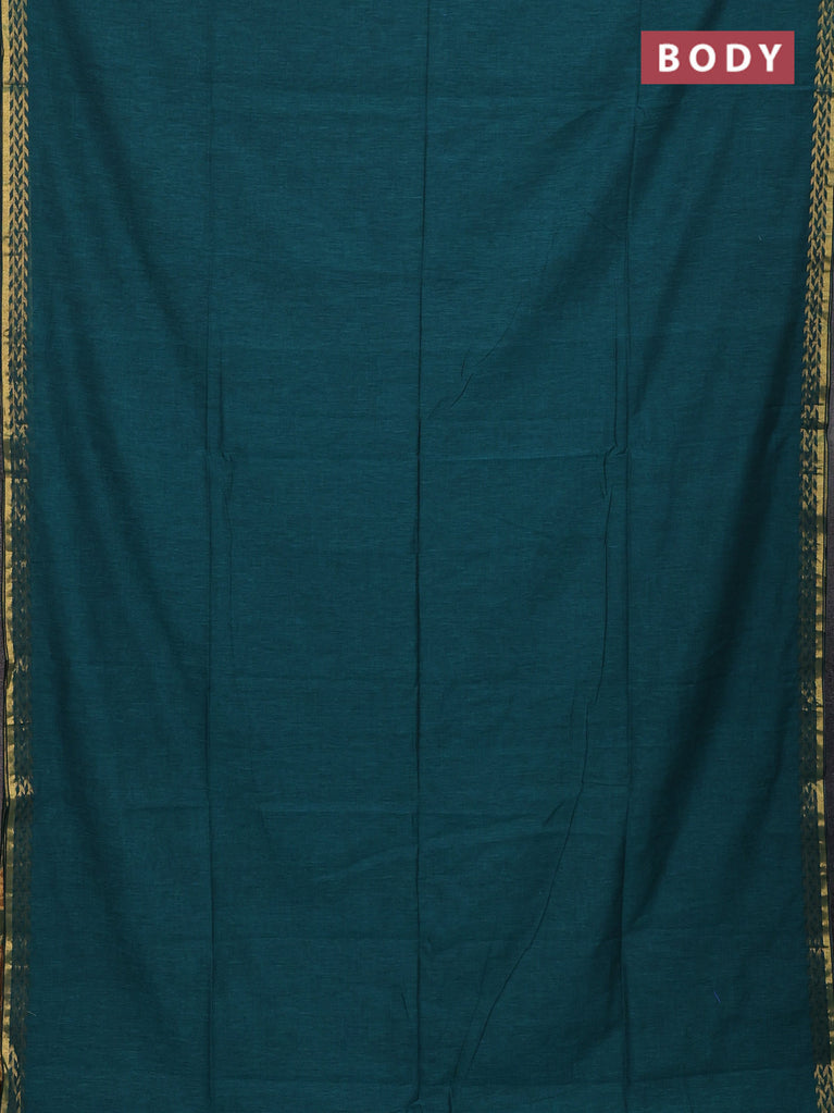 Bengal soft cotton saree peacock green with plain body and zari woven border