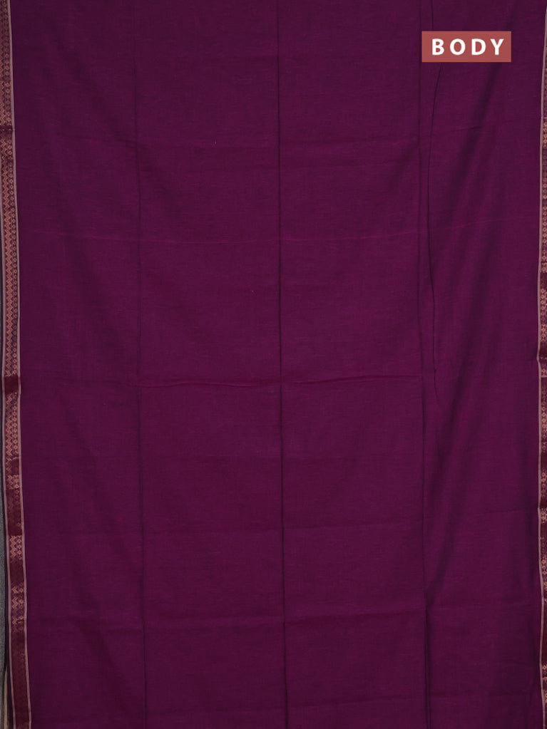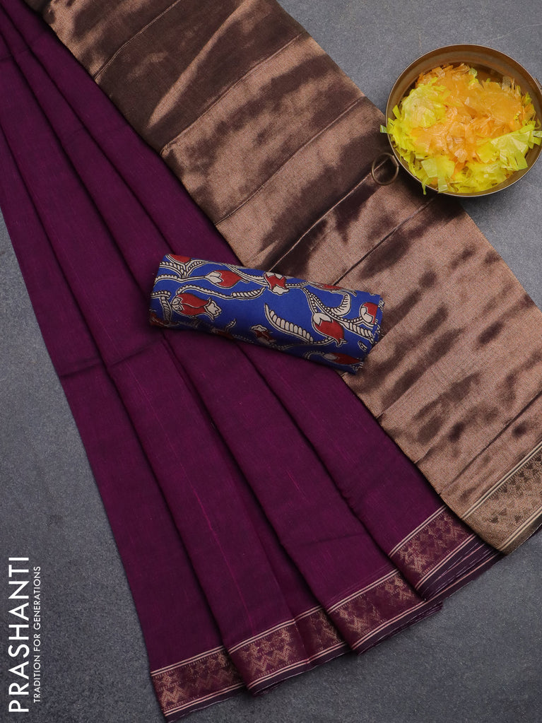 Bengal soft cotton saree purple and blue with plain body and zari woven border