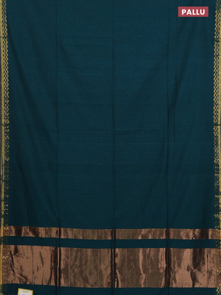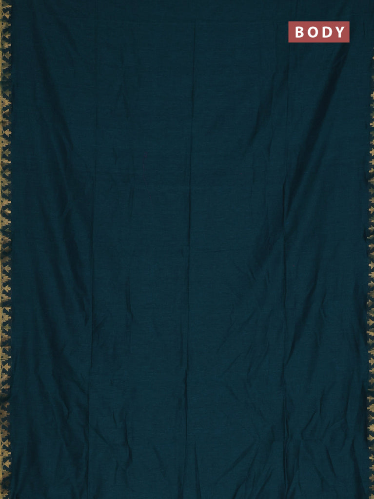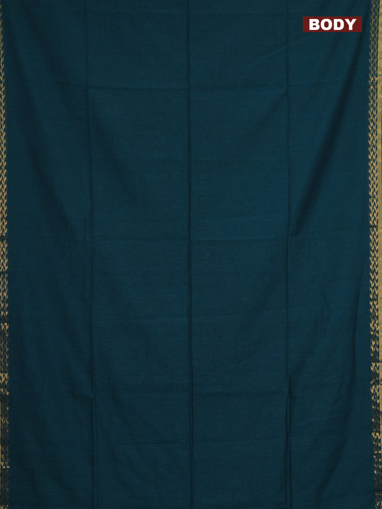 Bengal soft cotton saree peacock blue with plain body and zari woven piping border