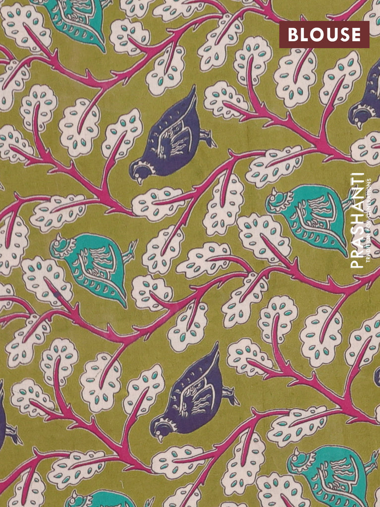 Bengal soft cotton saree teal green and sap green with plain body and zari woven border