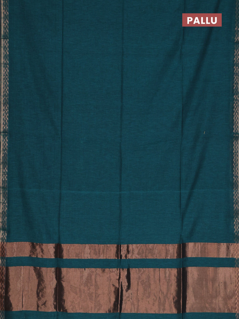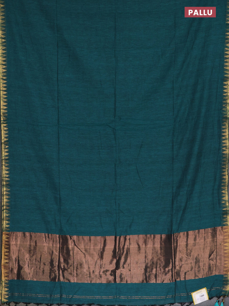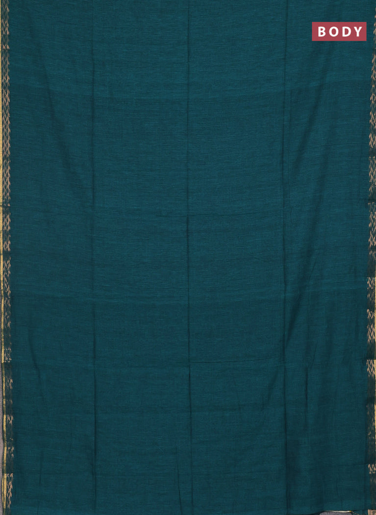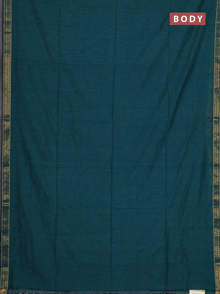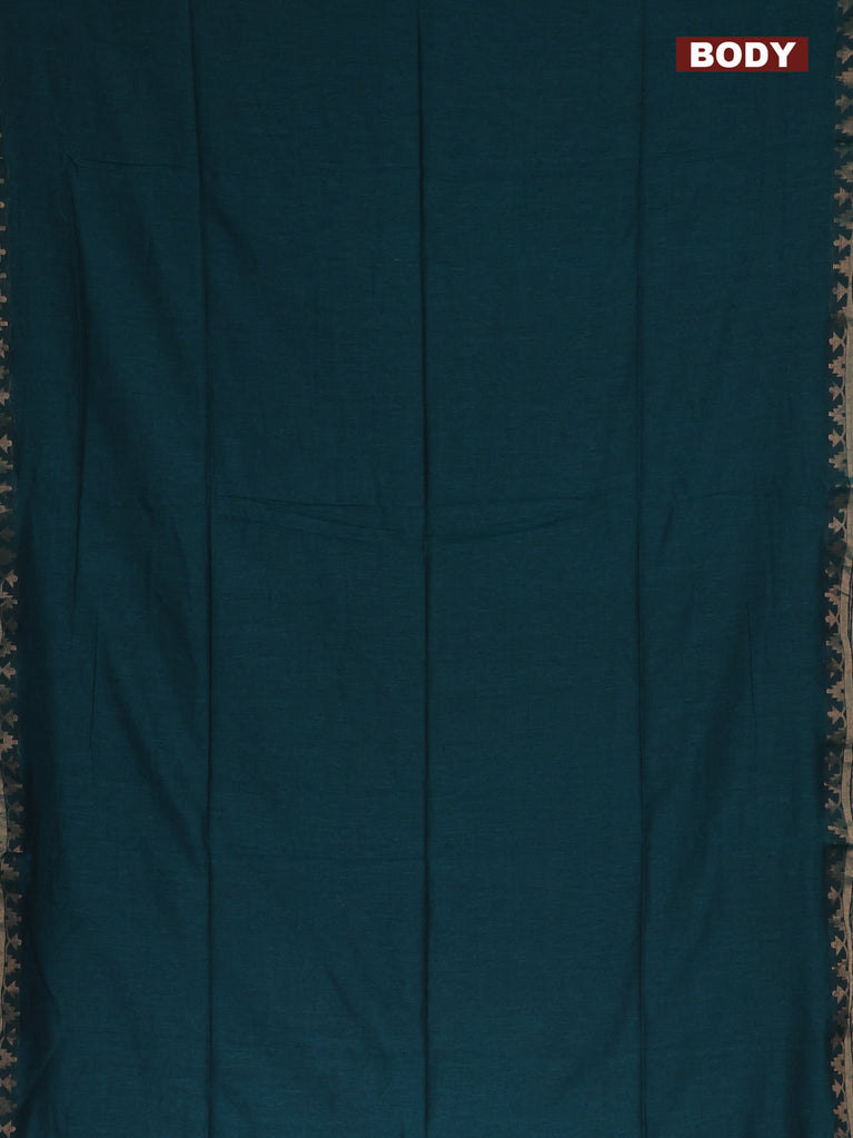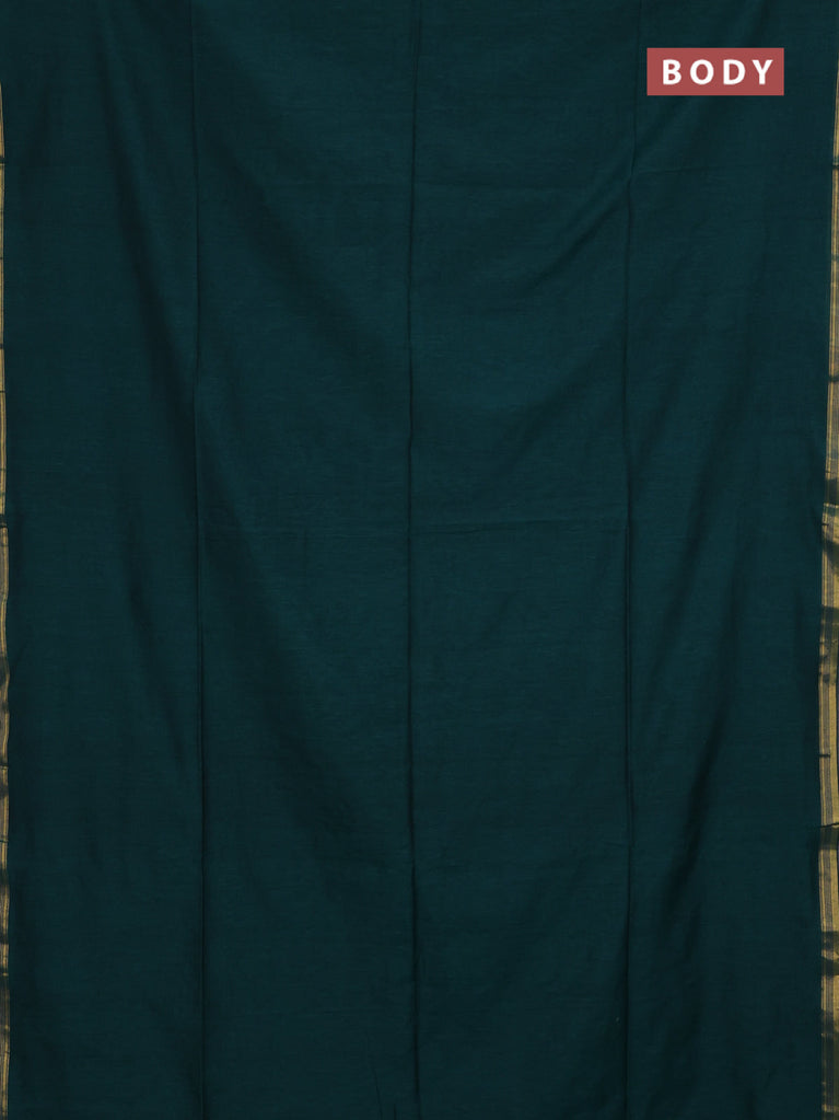 Bengal soft cotton saree teal green shade with plain body and zari woven piping border