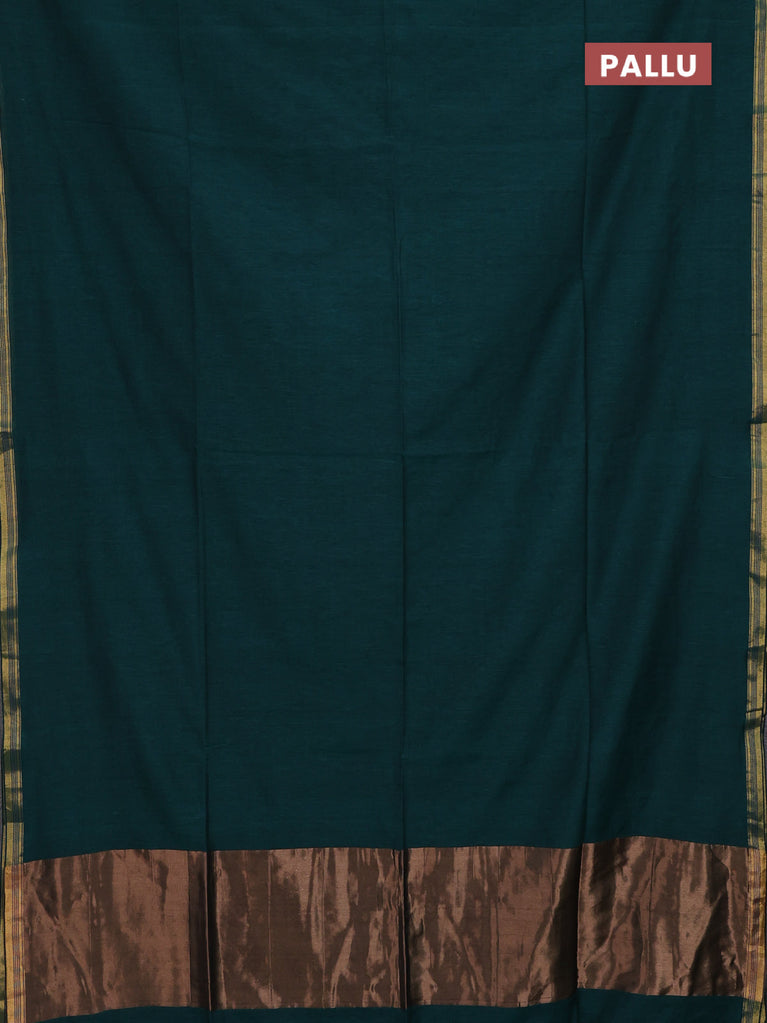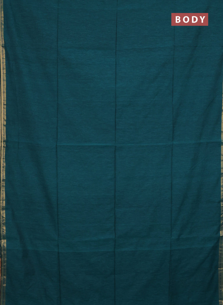 Bengal soft cotton saree teal green and maroon with plain body and zari woven border