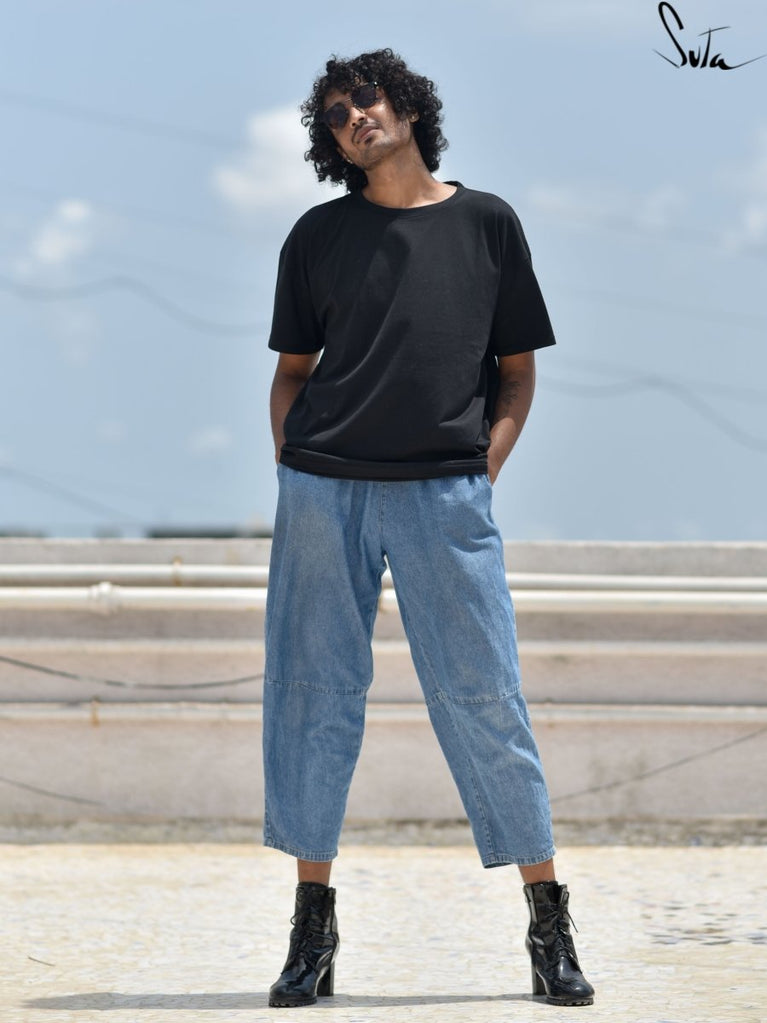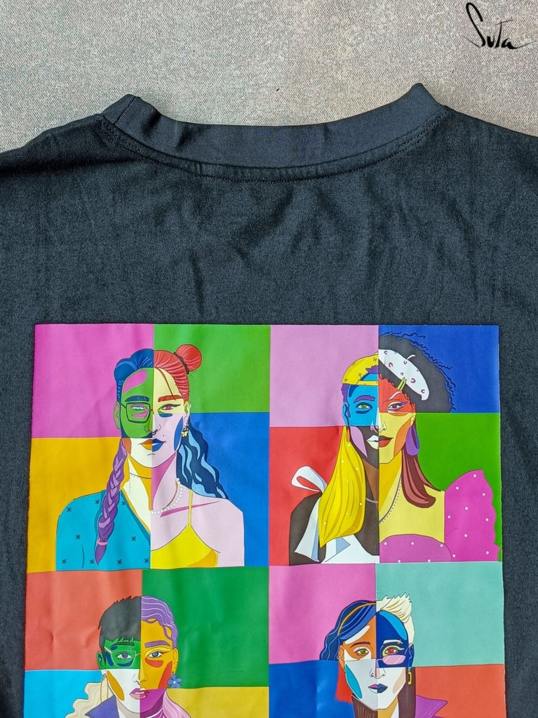 These statement tee-shirts are made of 100 per cent recycled fabric – 40 per cent is recycled from waste plastic bottles and 60 per cent from cotton textile waste. The plastic bottles are shredded into chips, which are then melted to extract polyester. The pre-consumer textile waste from mills is repurposed by separating the cotton scraps by colour. The scraps are then converted into recycled cotton fibre. Both these fibres are fused together to create a fibre that’s 100 per cent recycled. The fibre is spun into yarn, which is then woven into fabric.