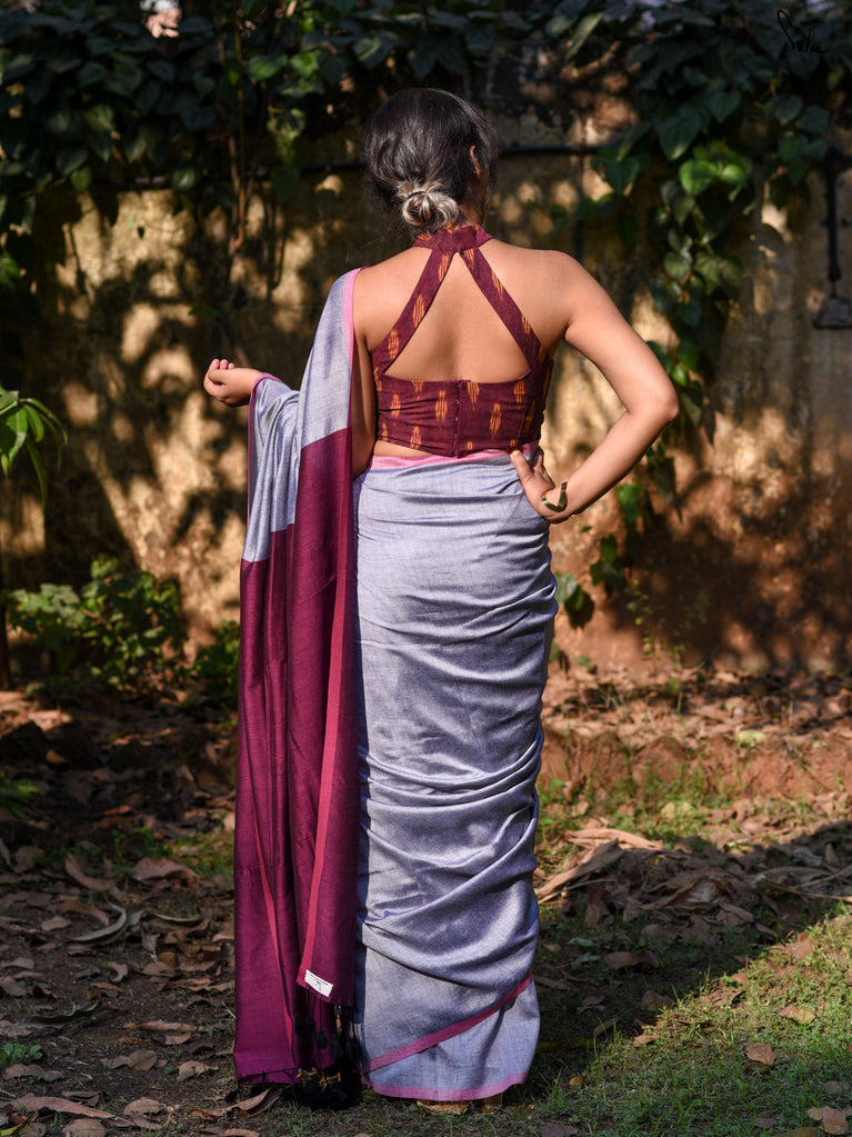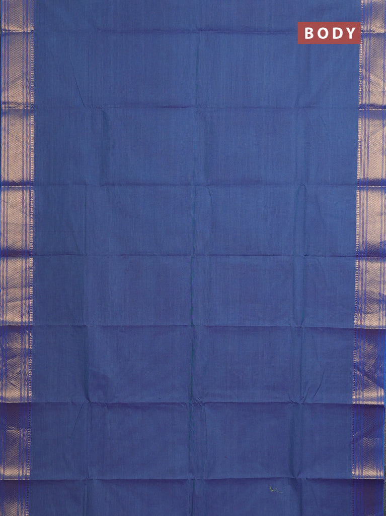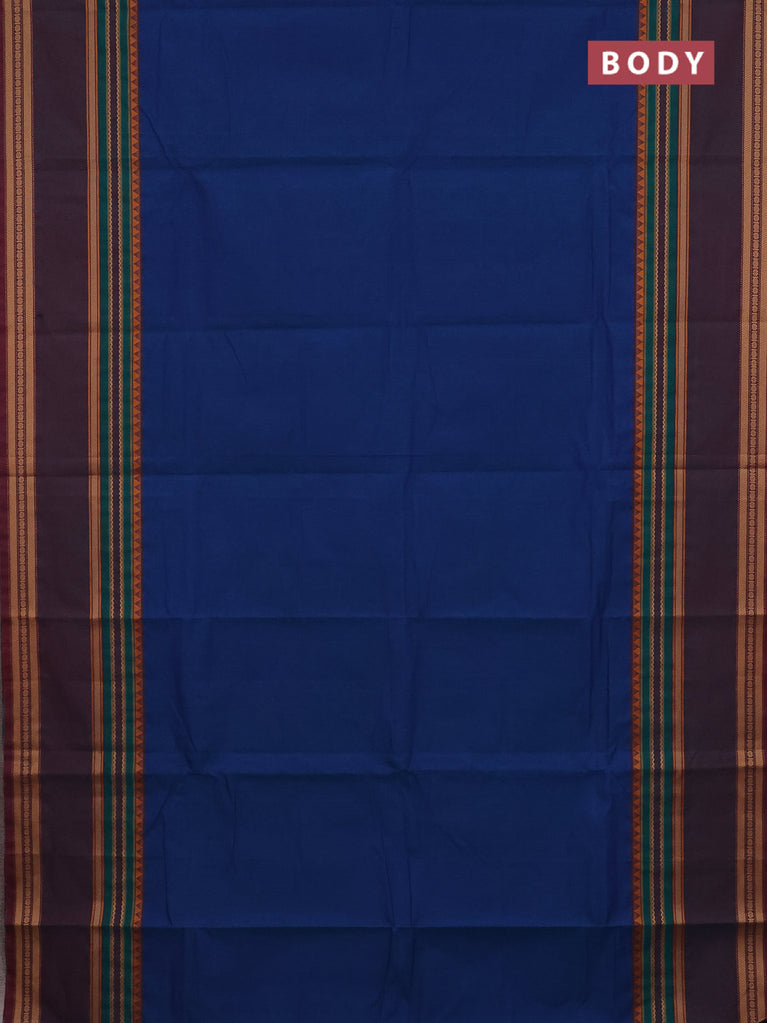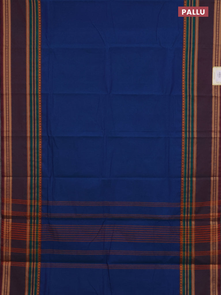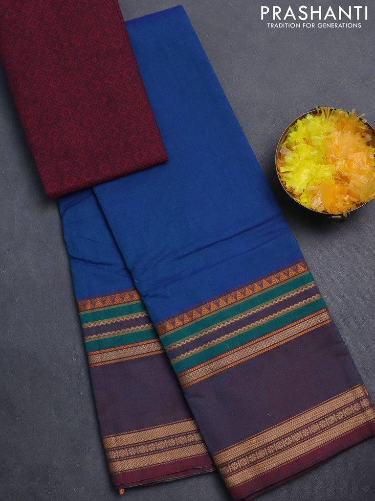 Chettinad cotton saree blue and dual shade of bluish maroon with plain body and long rettapet thread woven border