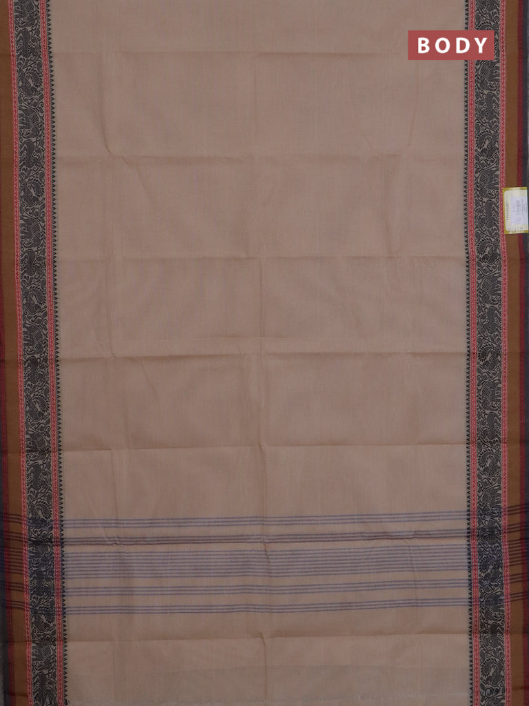 Chettinad cotton saree beige and black with plain body and thread woven border
