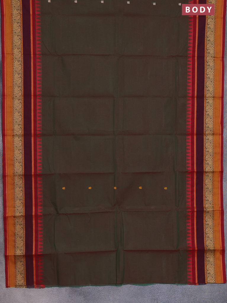 Chettinad cotton saree manthulir green and maroon with thread woven buttas and long rettapet thread woven border