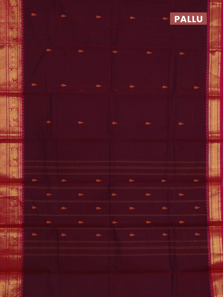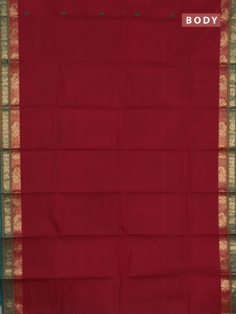Chettinad cotton saree maroon and red with thread woven buttas and annam & elephant zari woven border