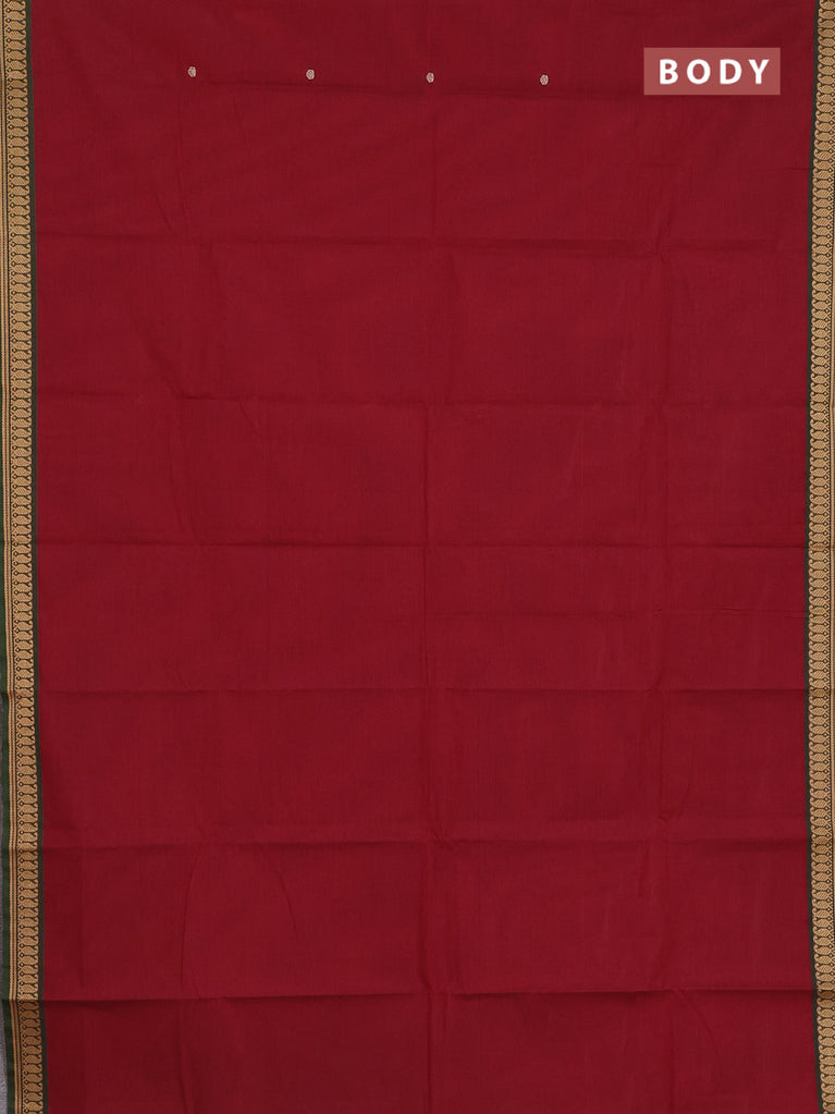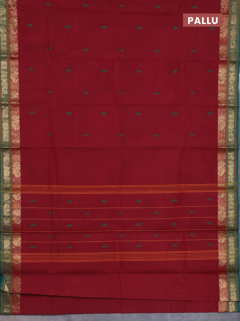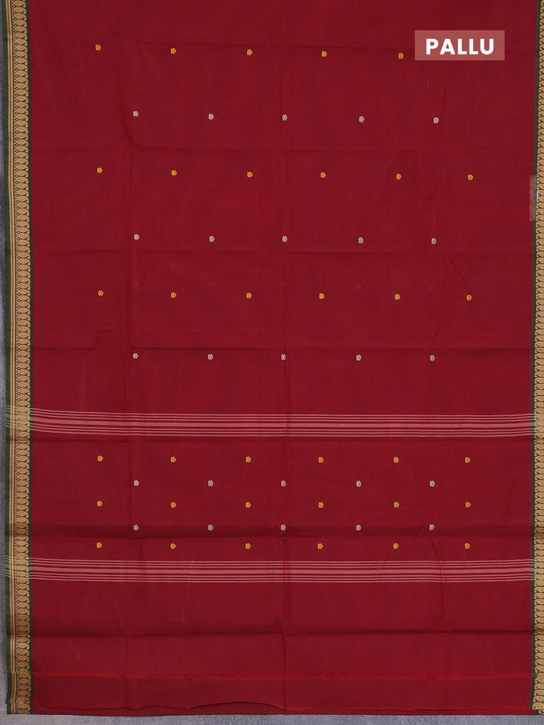 Chettinad cotton saree maroon and green with thread woven buttas and zari woven border