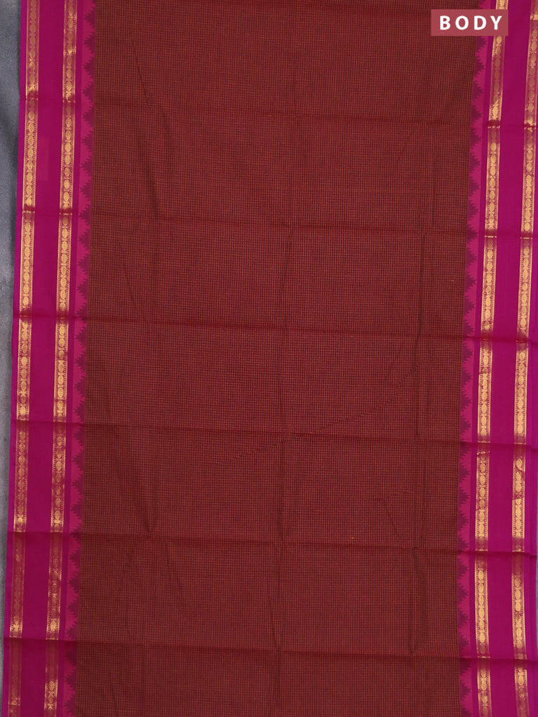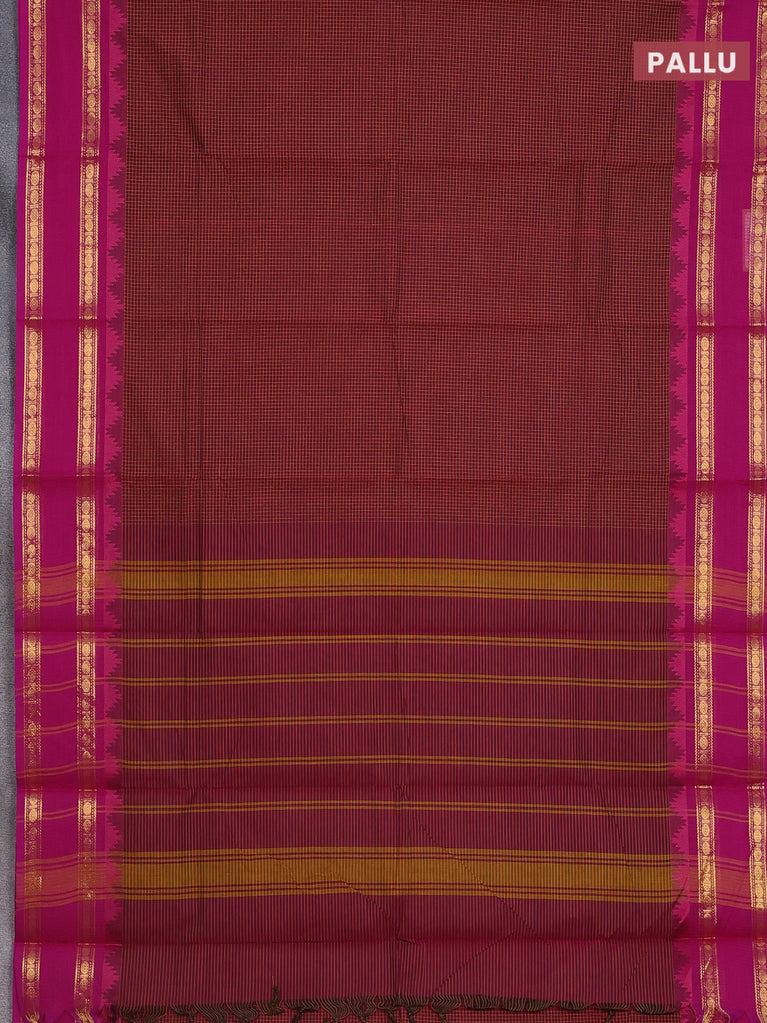 Chettinad cotton saree maroon and magenta pink with allover checked pattern and rattapet zari woven border