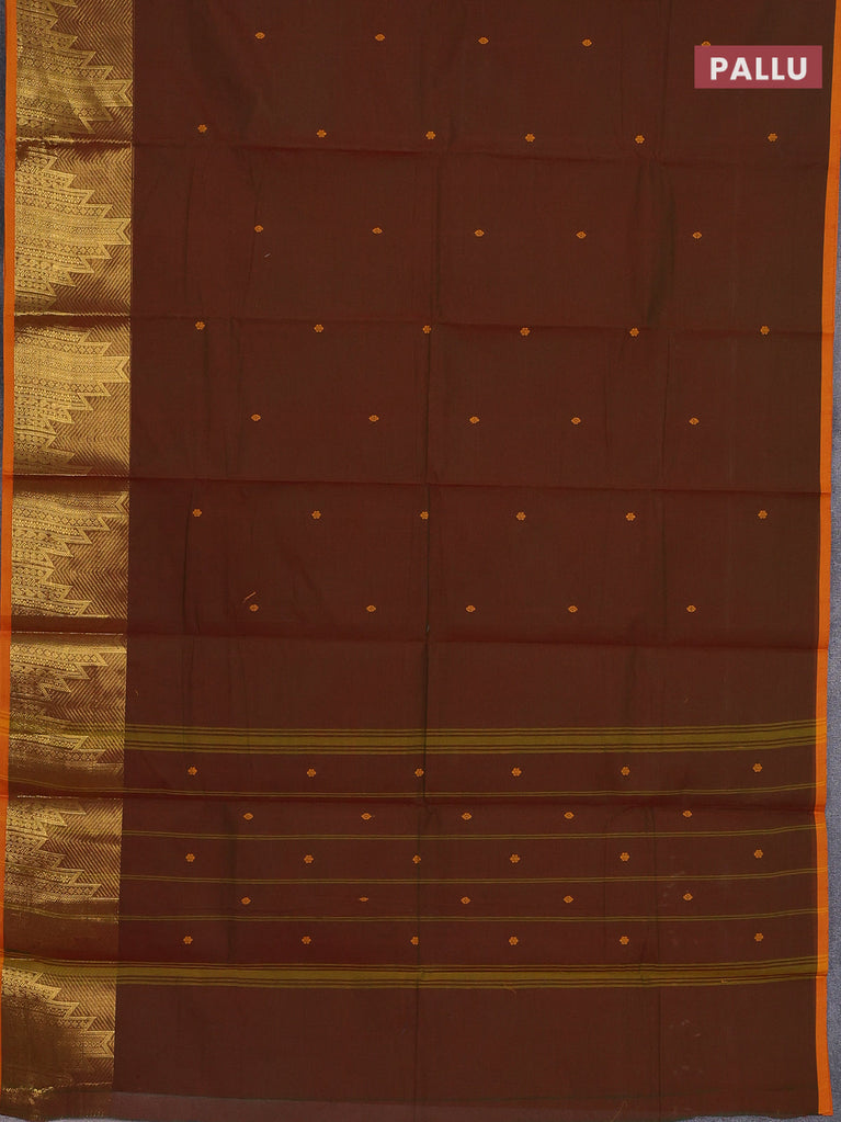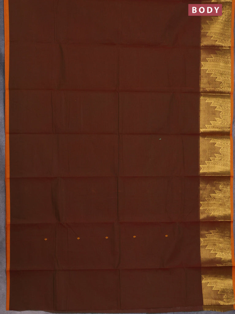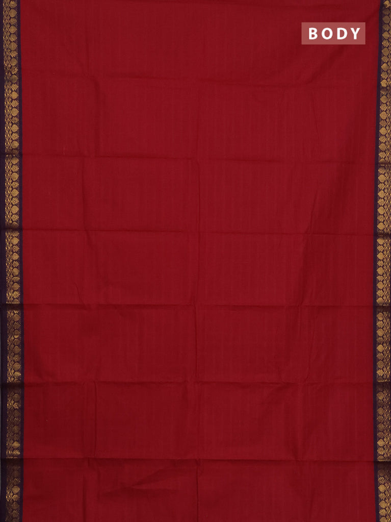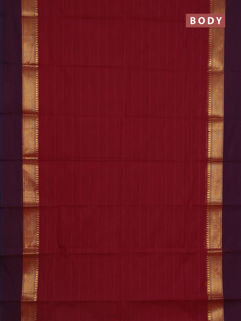 Chettinad cotton saree maroon and dark mustard with plain body and rettapet zari woven border