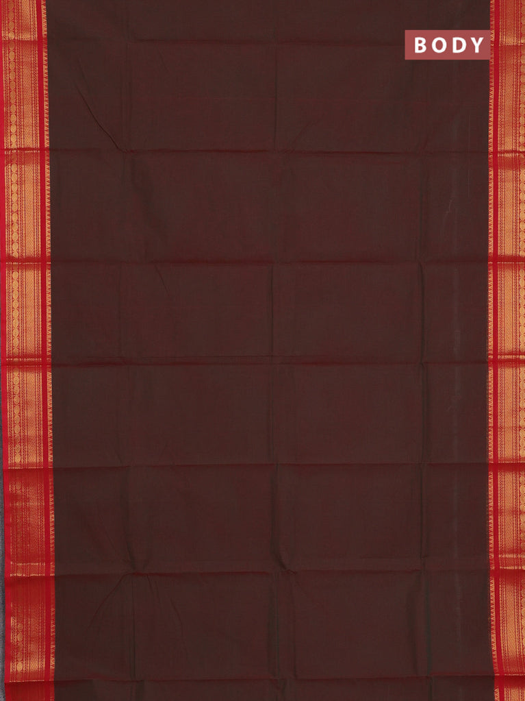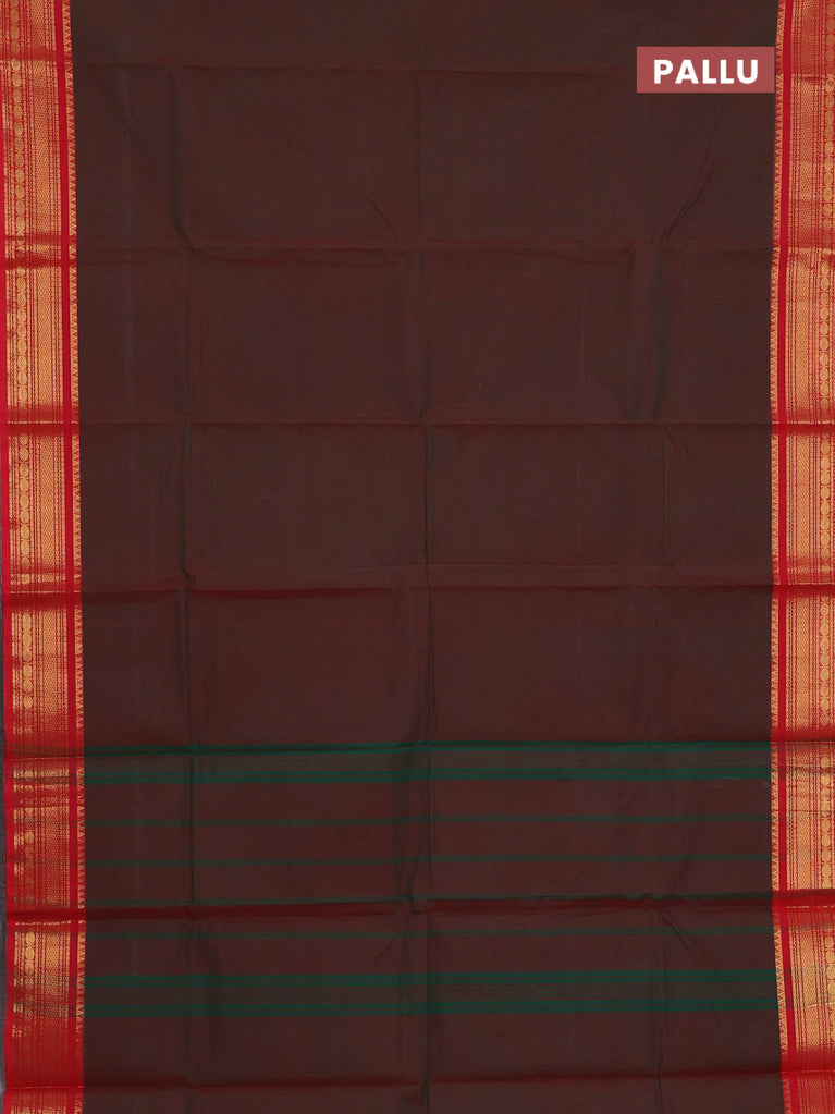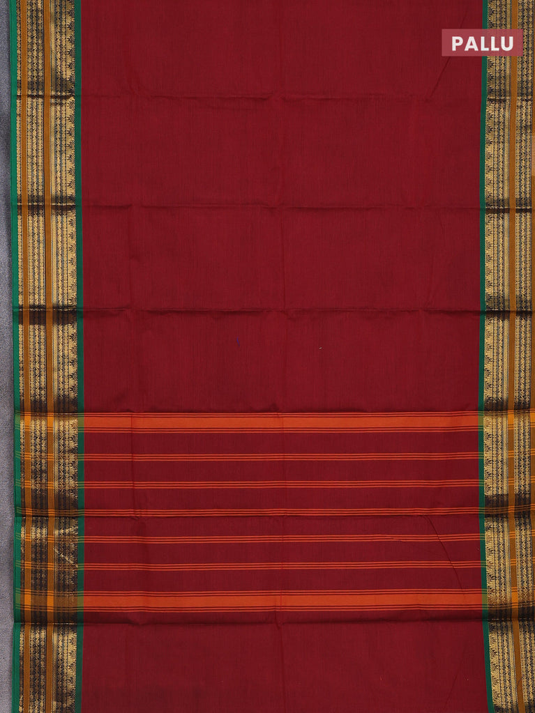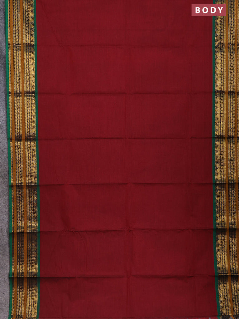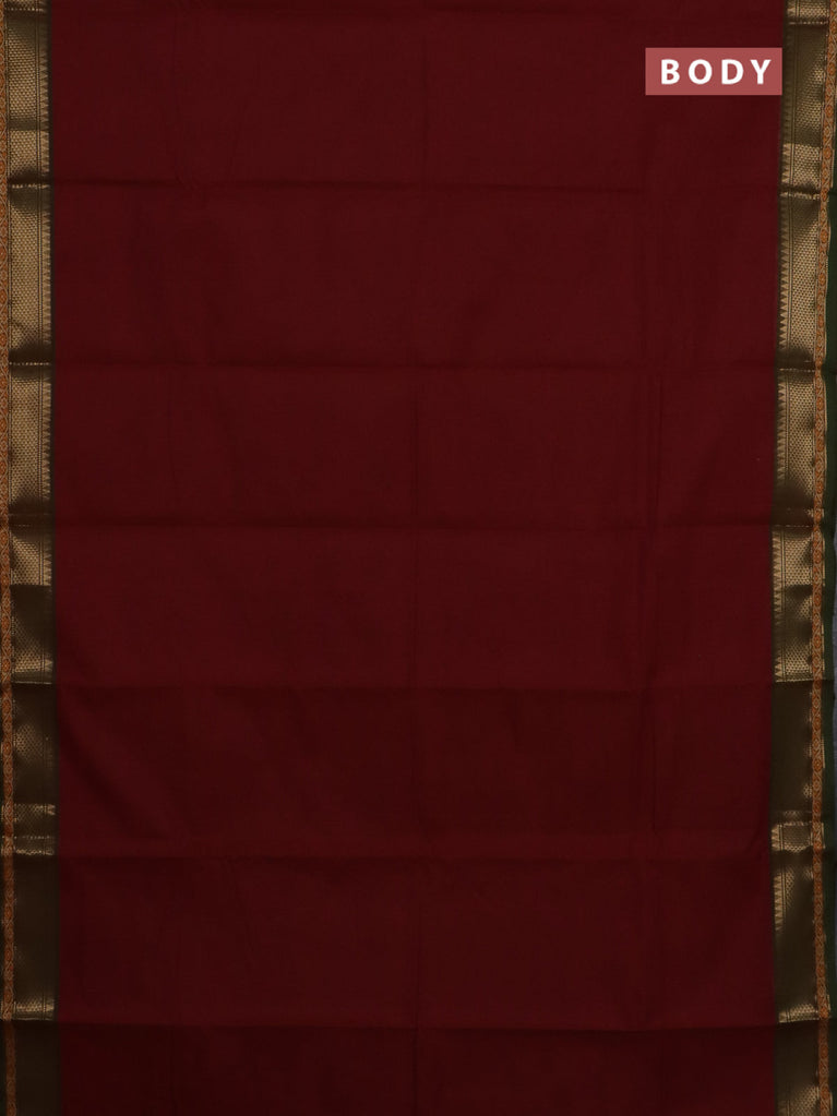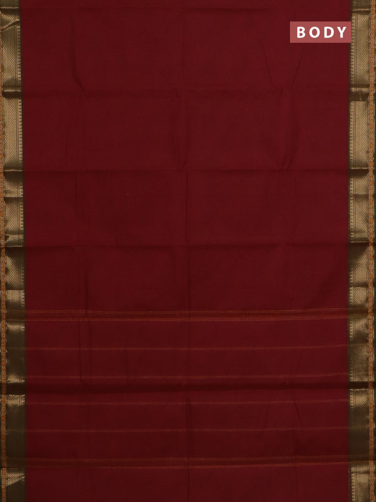 Chettinad cotton saree maroon and sap green with plain body and zari woven border