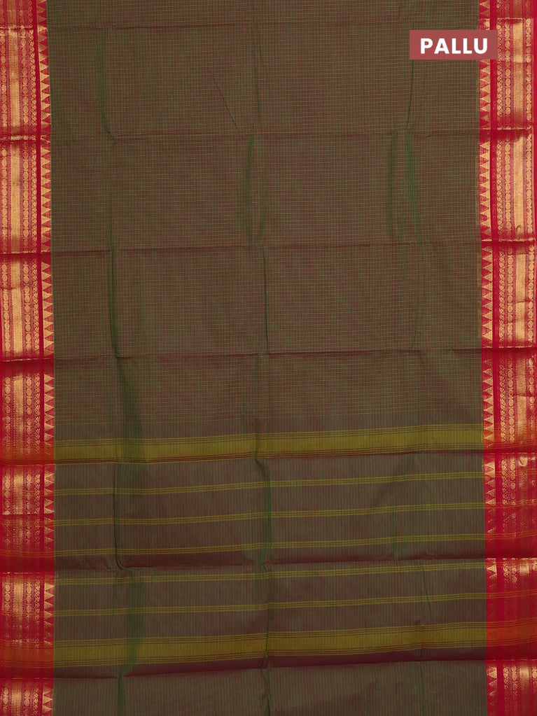 Chettinad cotton saree manthulir green and red with allover checked pattern and zari woven border