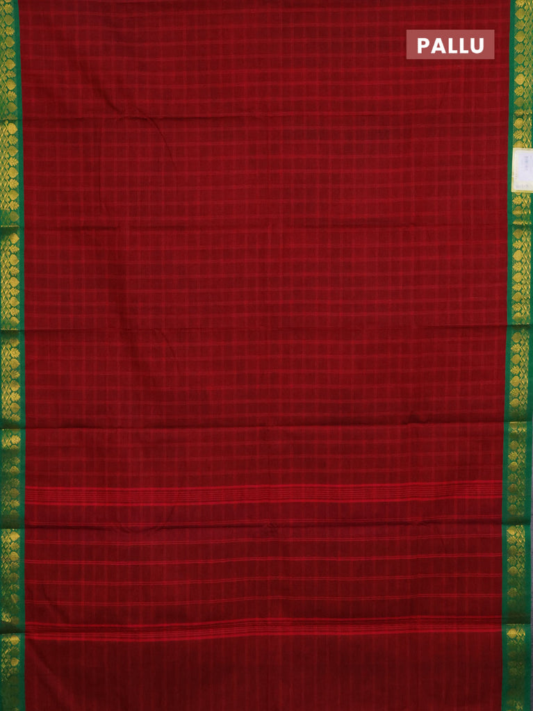 Chettinad cotton saree maroon and green with allover checked pattern and zari woven border