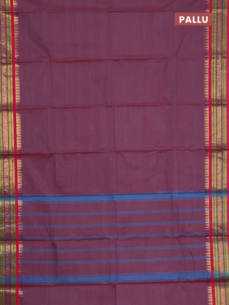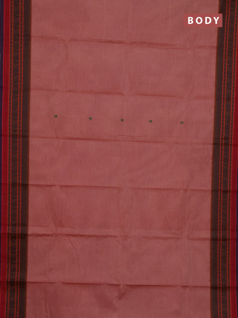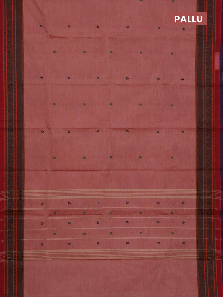 Chettinad cotton saree navy blue and dark magenta pink with thread woven buttas and zari woven border