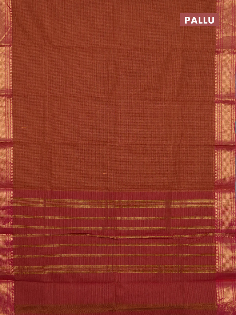 Chettinad cotton saree mauve pink and deep coffee brown with thread woven buttas and zari woven border