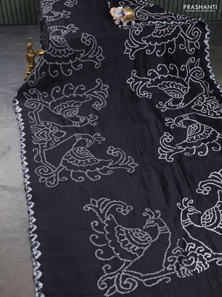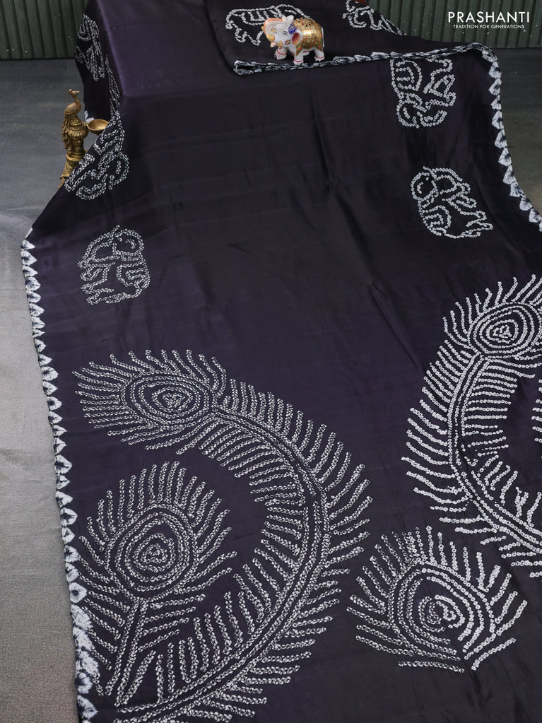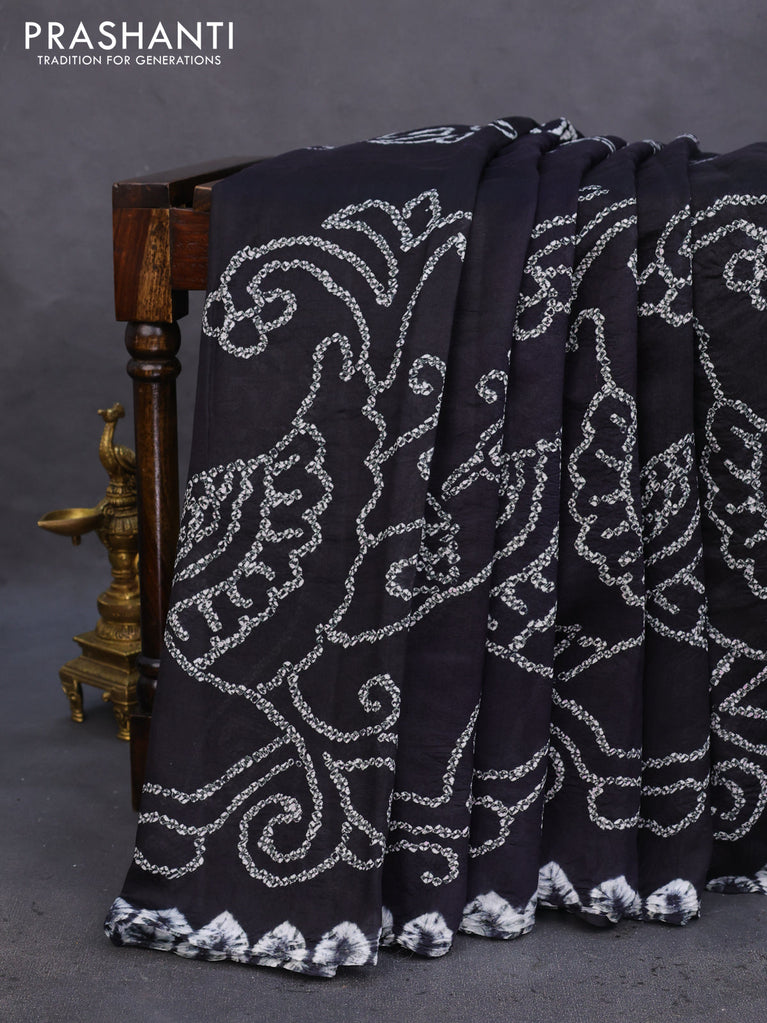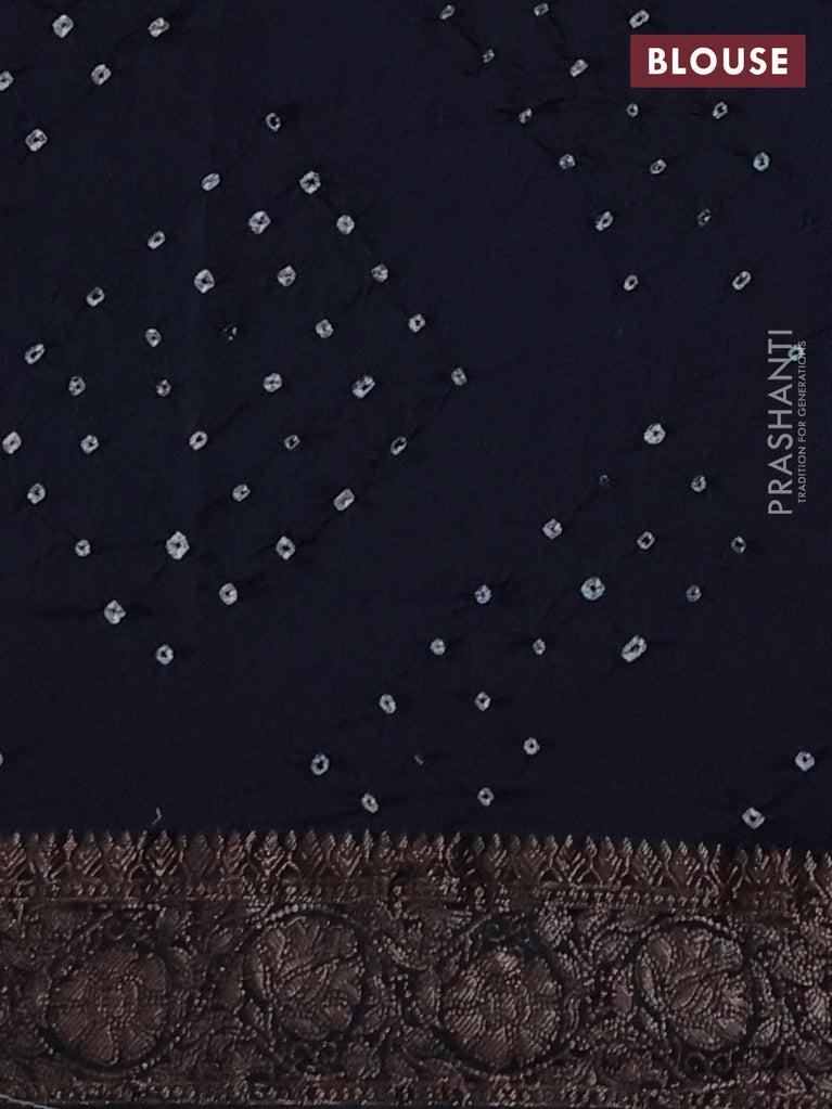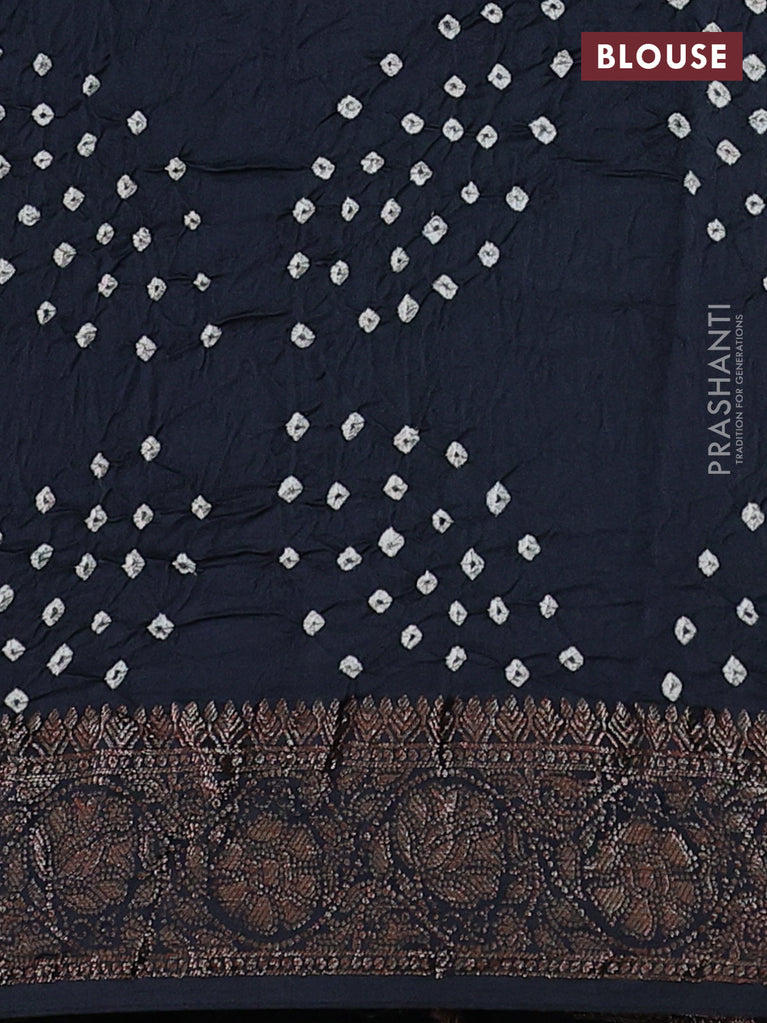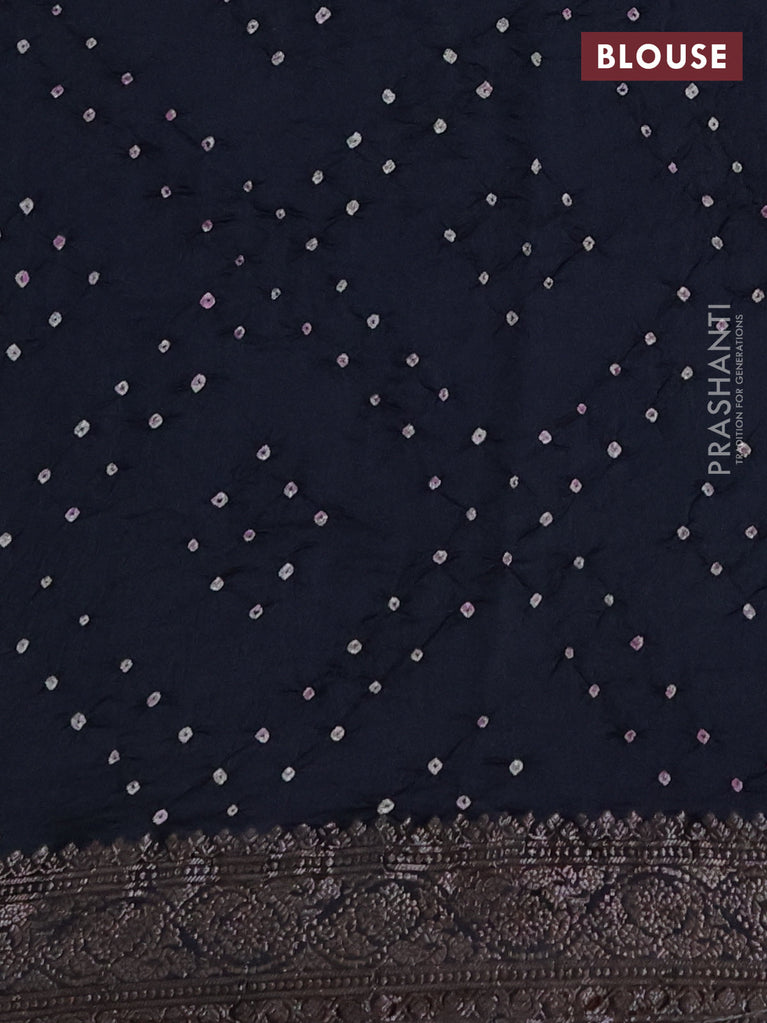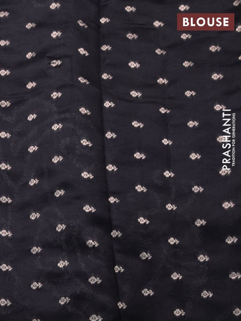 Chiniya silk saree brown with allover silver zari buttas & bandhini prints and silver zari woven border