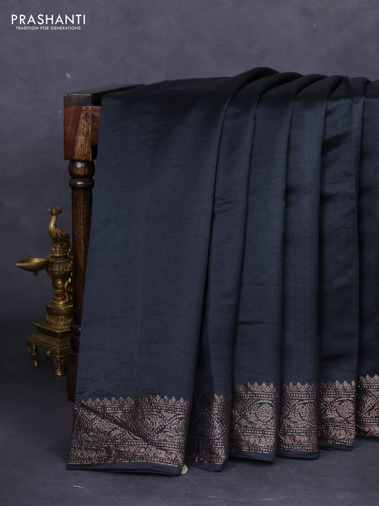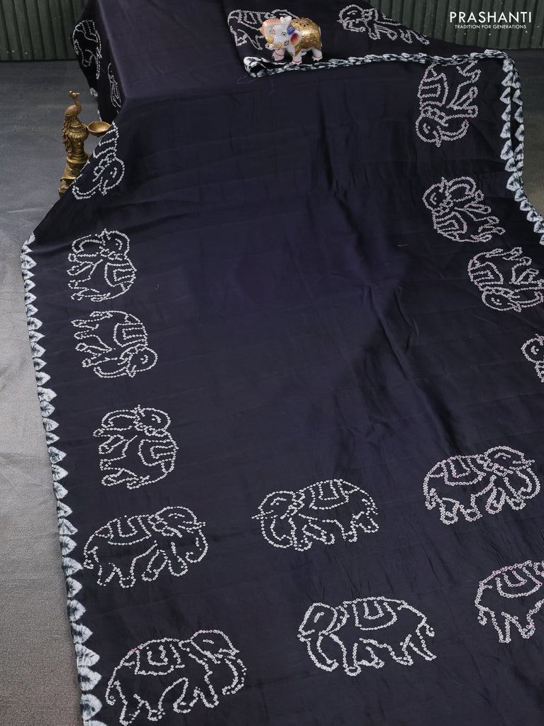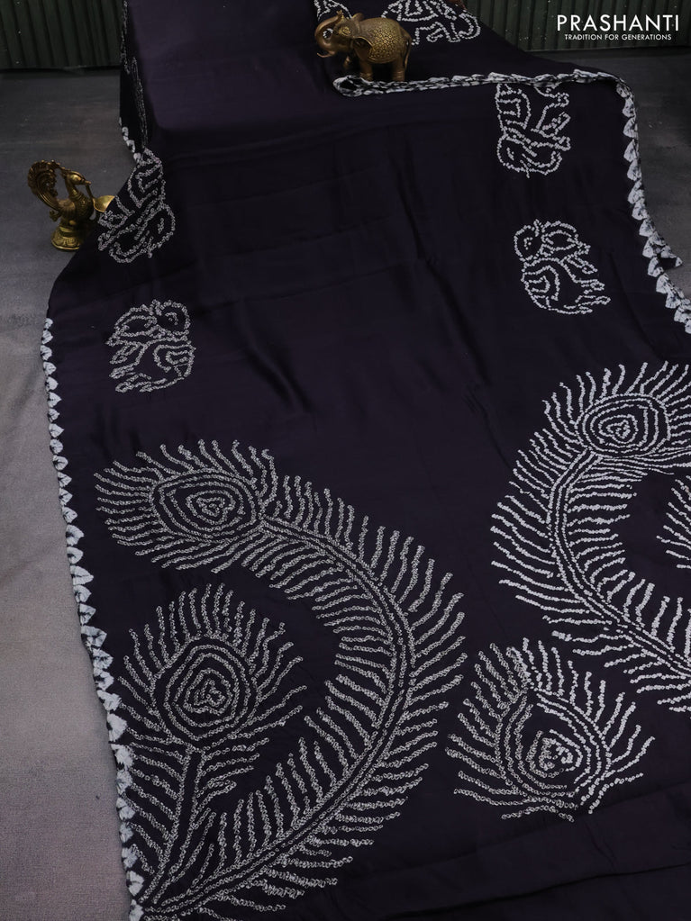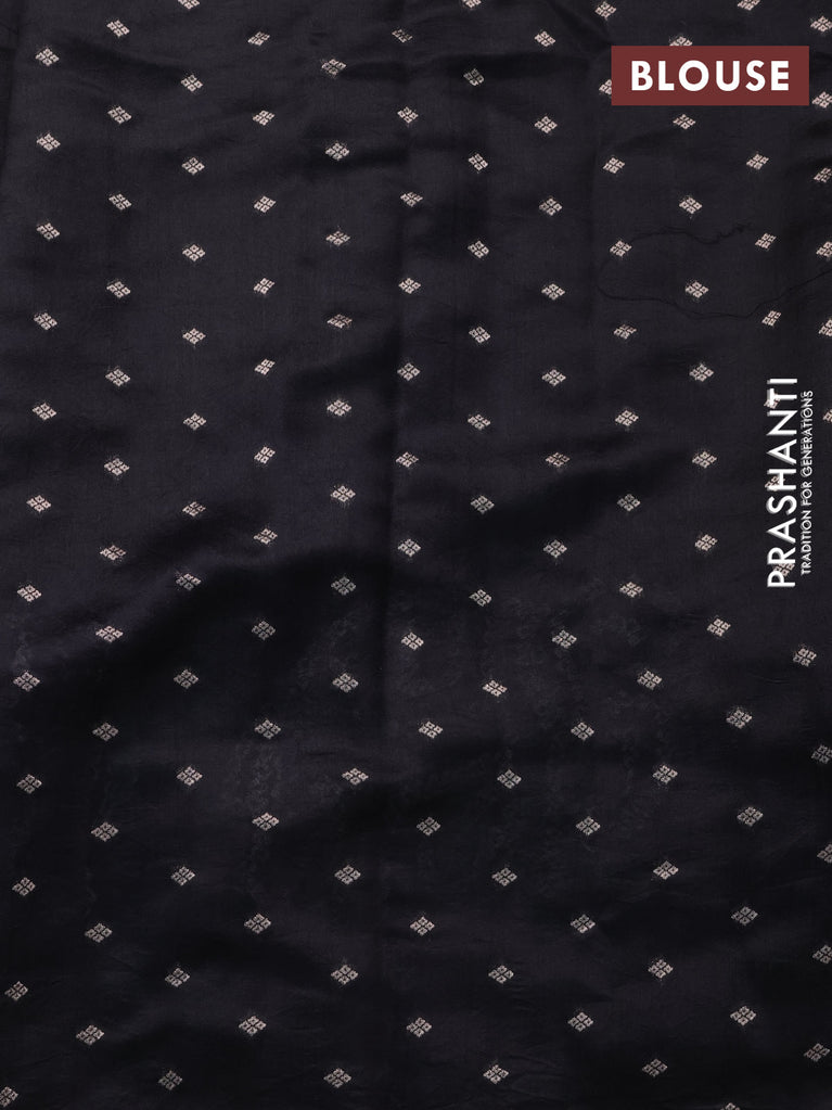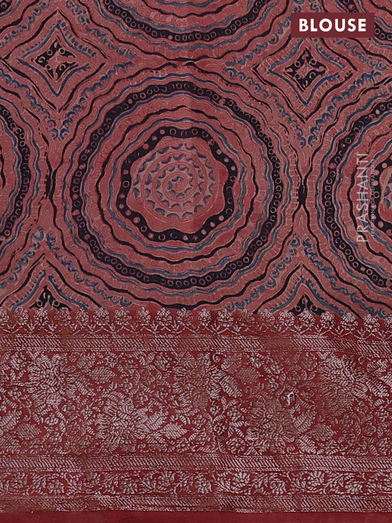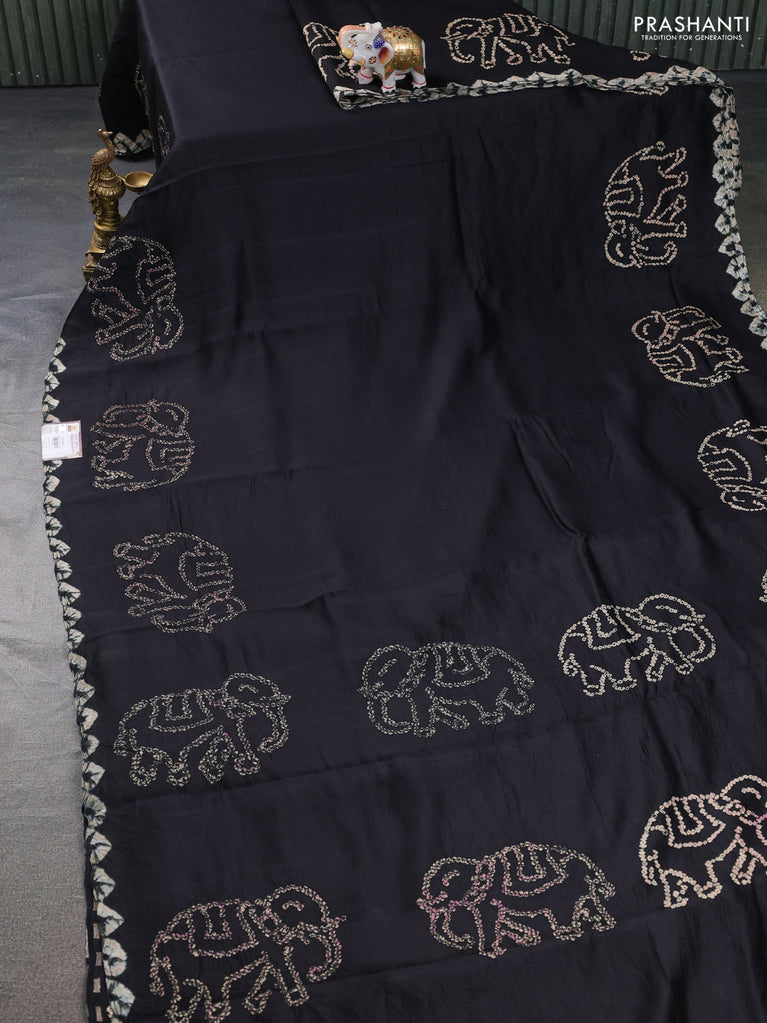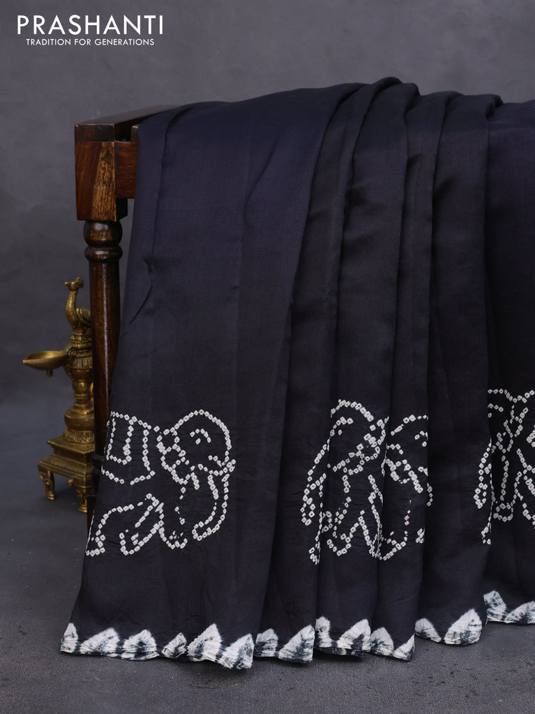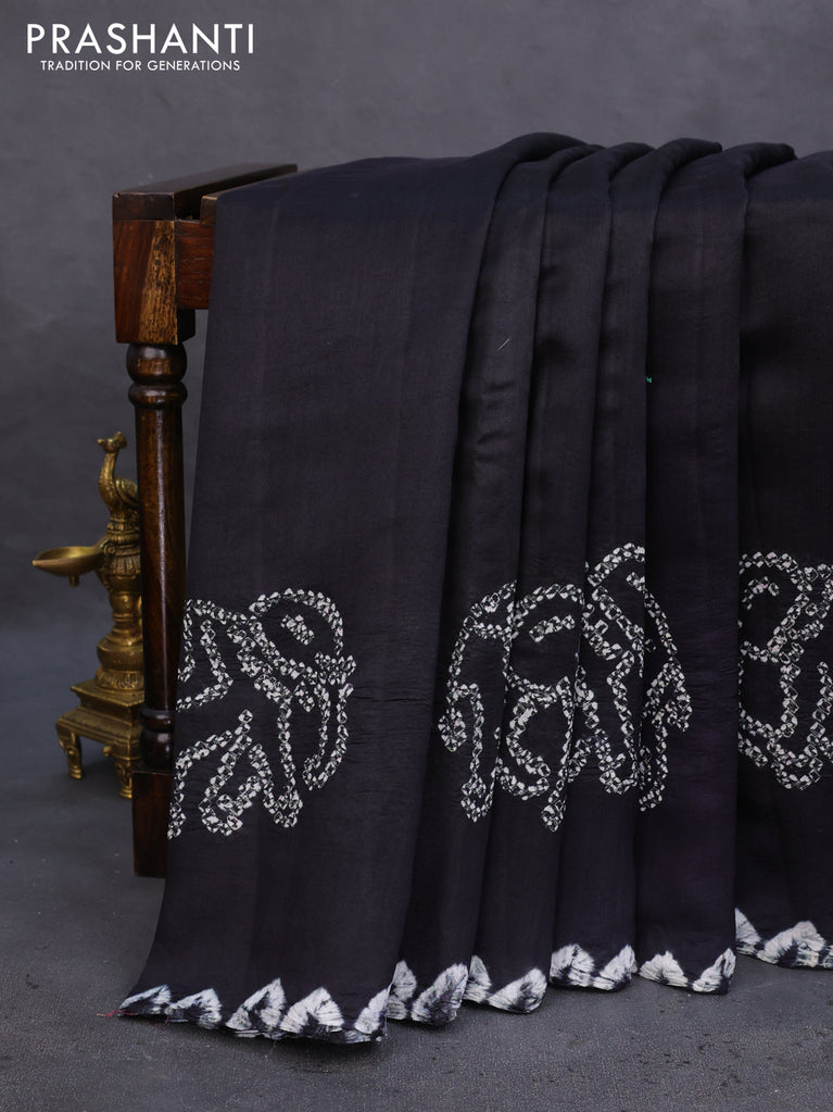 Chiniya silk saree brown with allover silver zari buttas & bandhini prints and silver zari woven border
