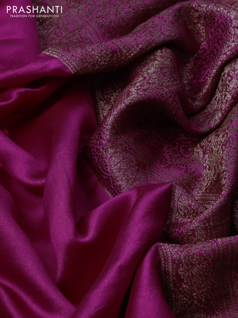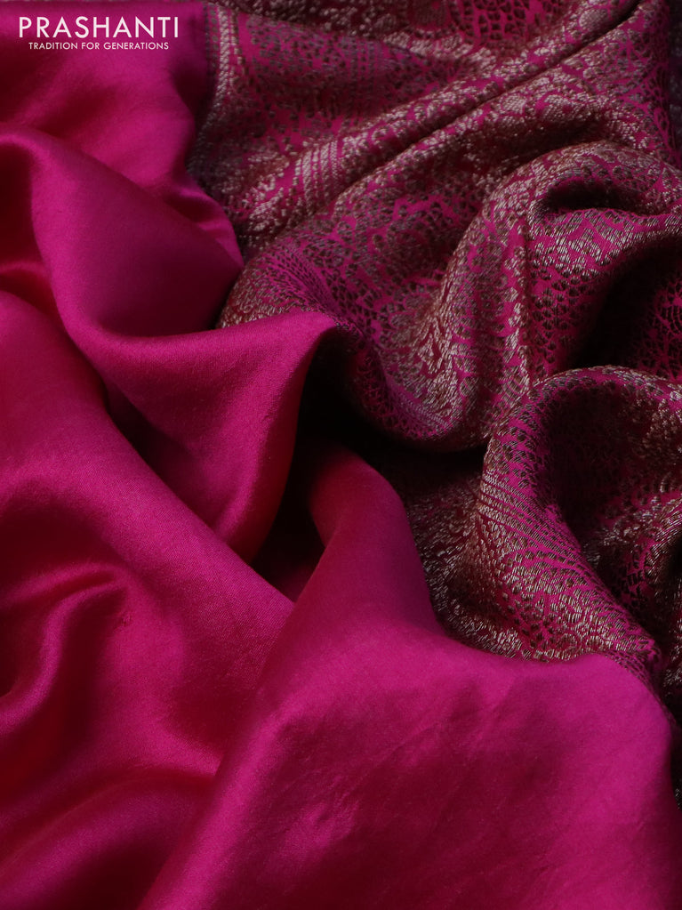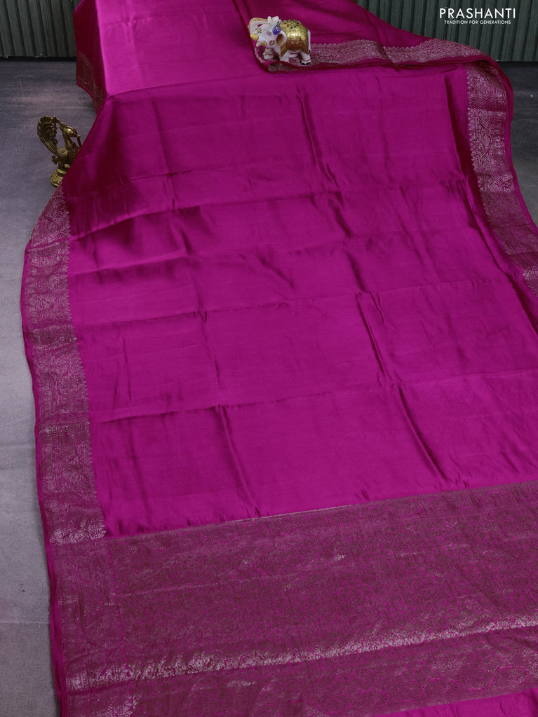 Chiniya silk saree magenta pink with plain body and woven border
