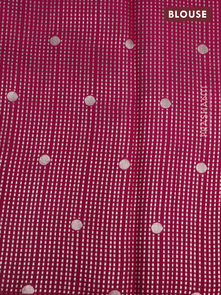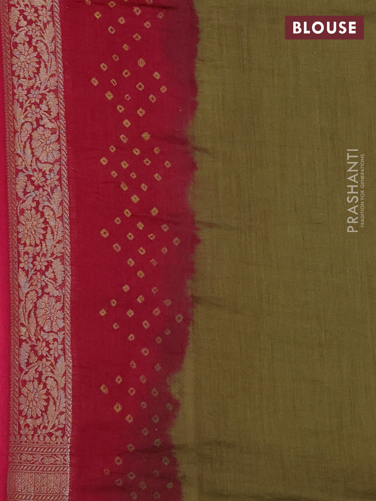 Chiniya silk saree magenta pink and military green with allover zari buttas & bandhini prints and zari woven border