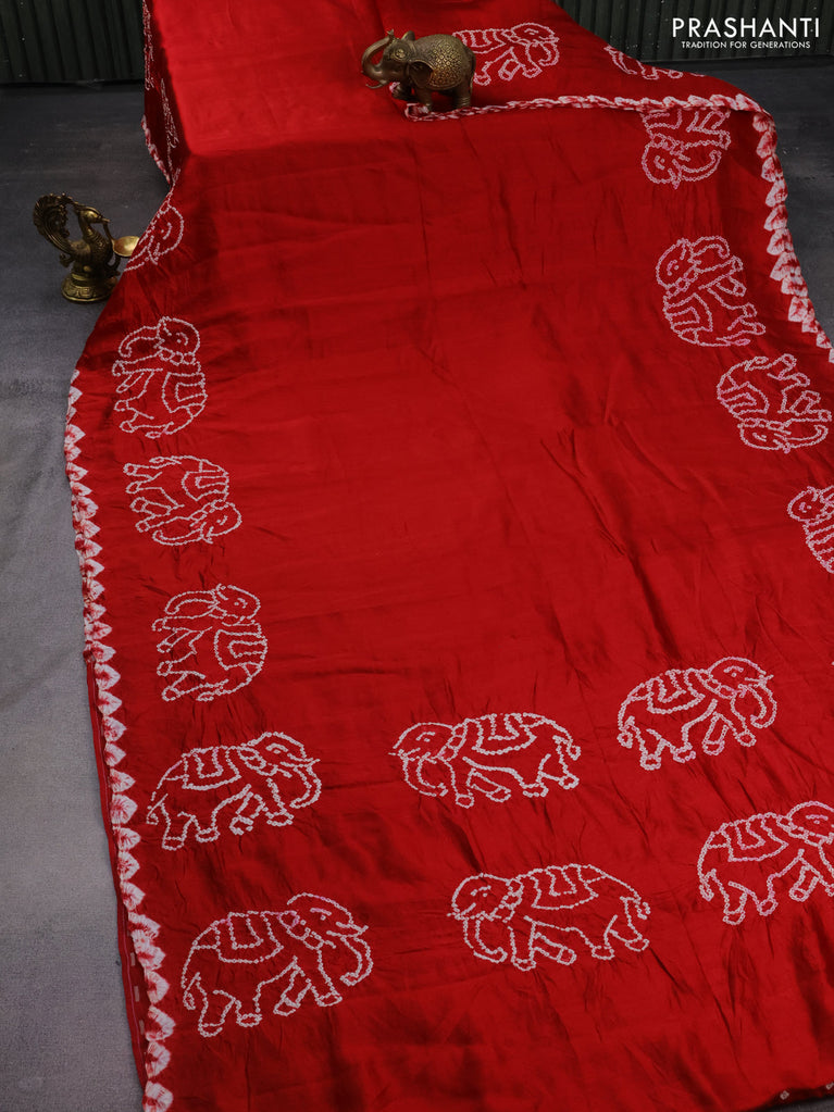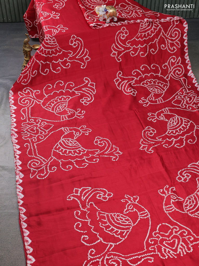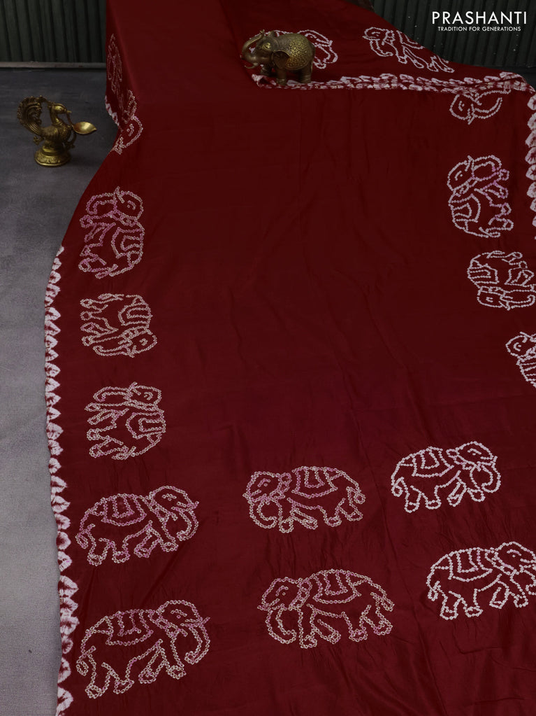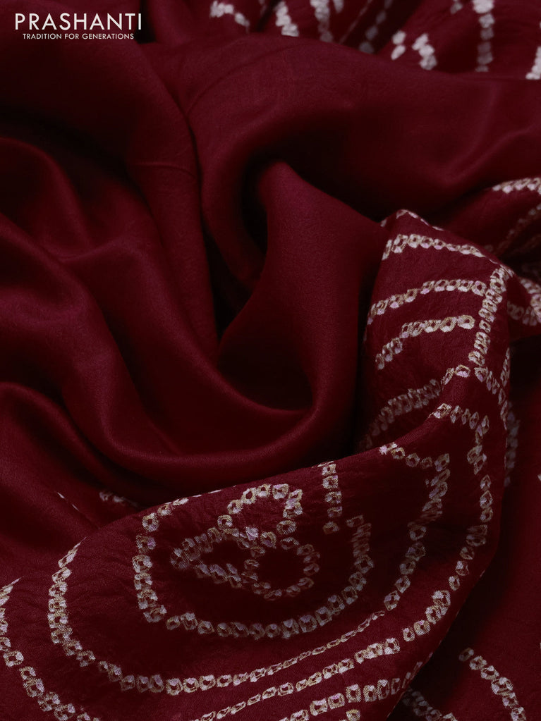 Chiniya silk saree maroon with allover bandhani prints