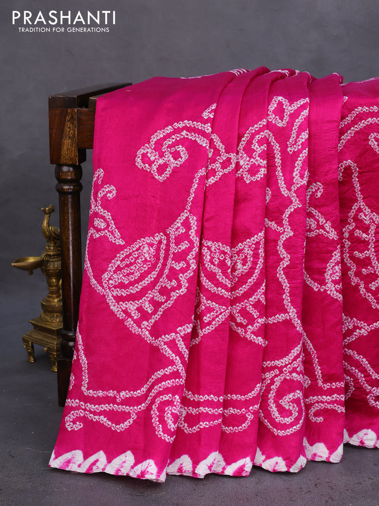 Chiniya silk saree magenta pink with allover bandhani prints