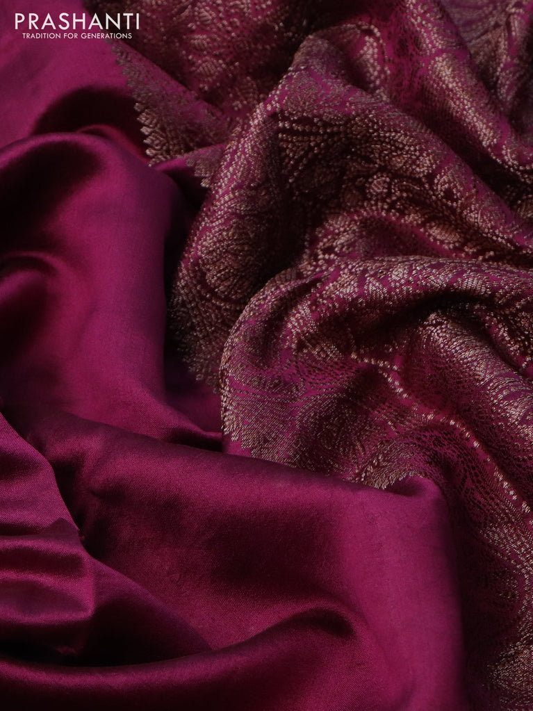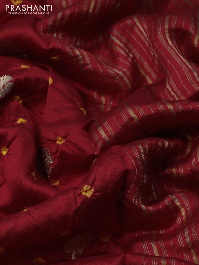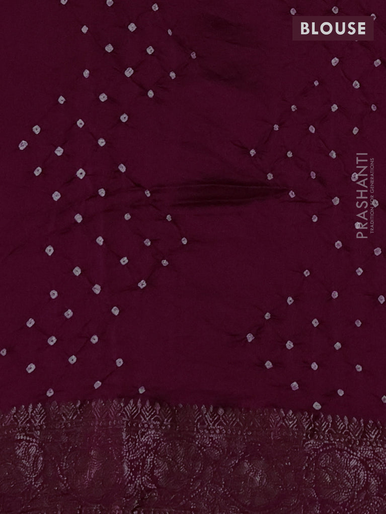 Chiniya silk saree wine shade with allover silver zari buttas & bandhini prints and silver zari woven border