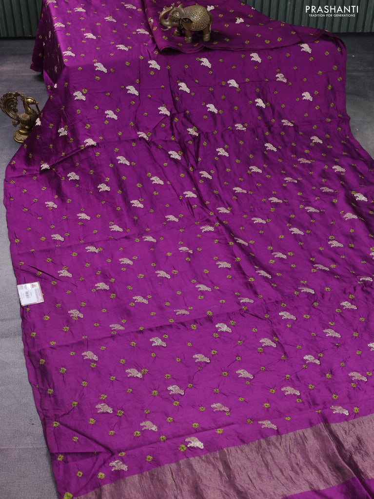Chiniya silk saree purple and pink with allover bandhani prints & zari weaves and zari woven border