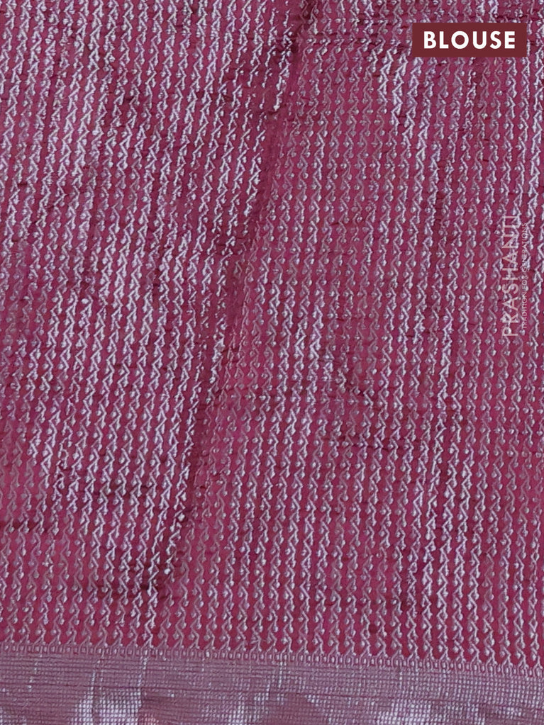 Chiniya silk saree pink with allover silver zari weaves and zari woven simple border