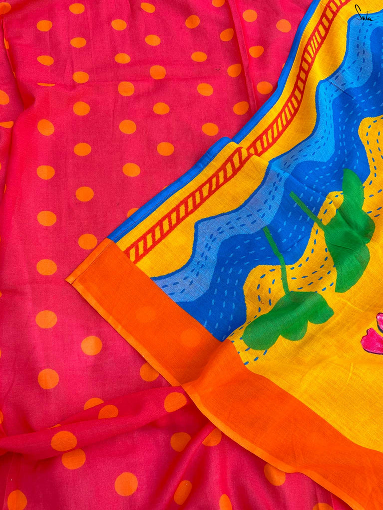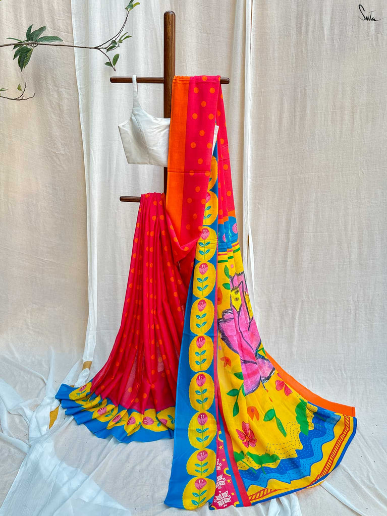 Note: Our mul sarees are slightly transparent, it’s the nature of the fabric and part of its soft, airy charm.Note : This is a pre-order and your order will be shipped within 10 days